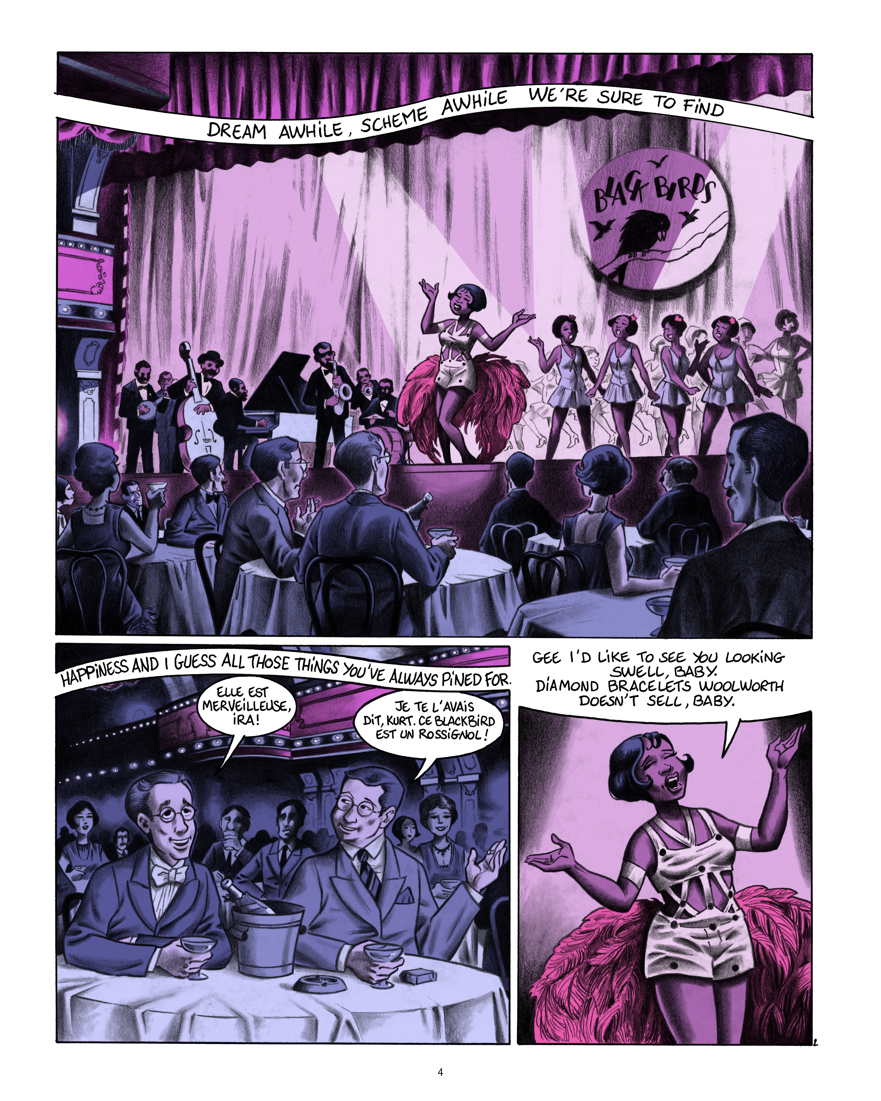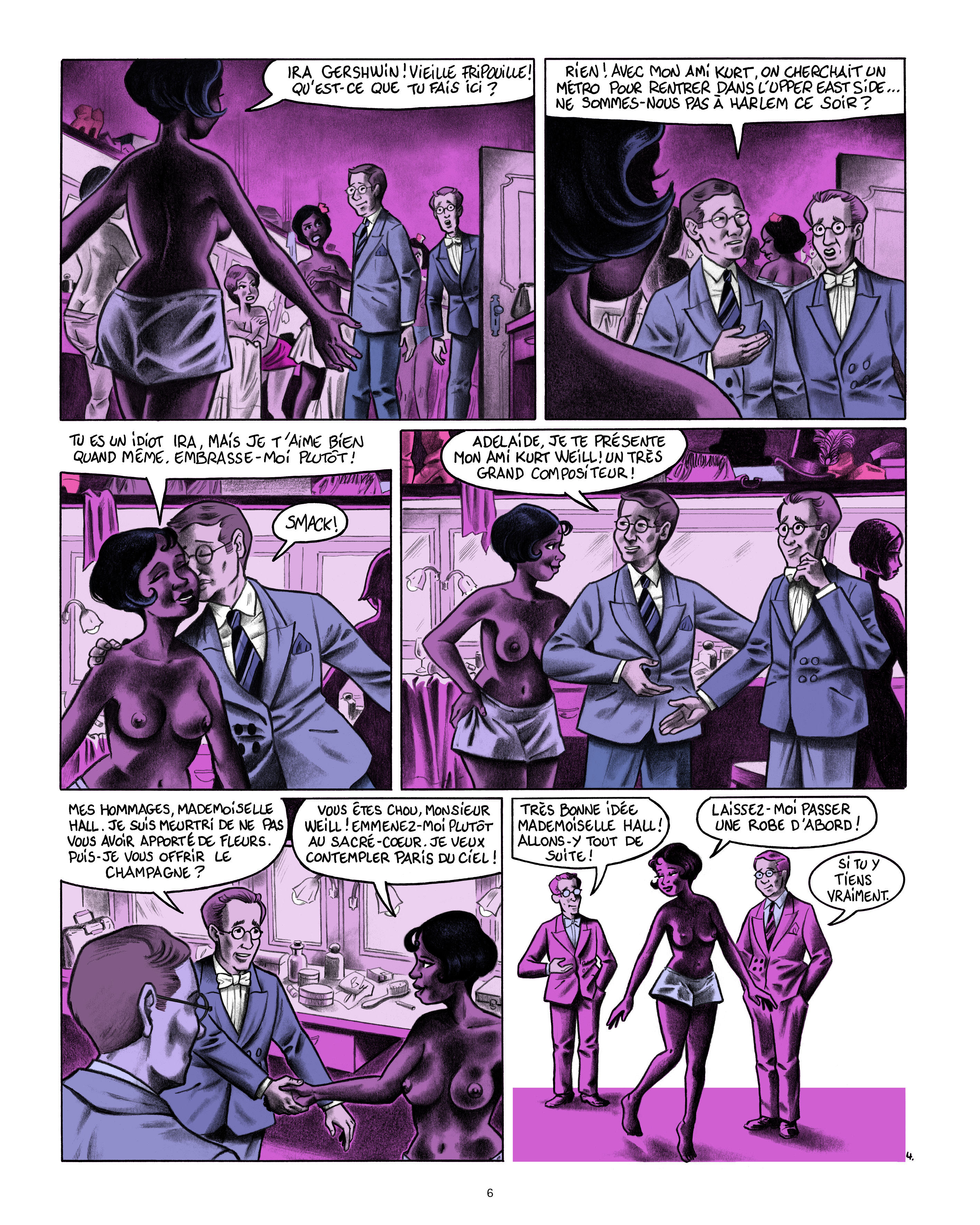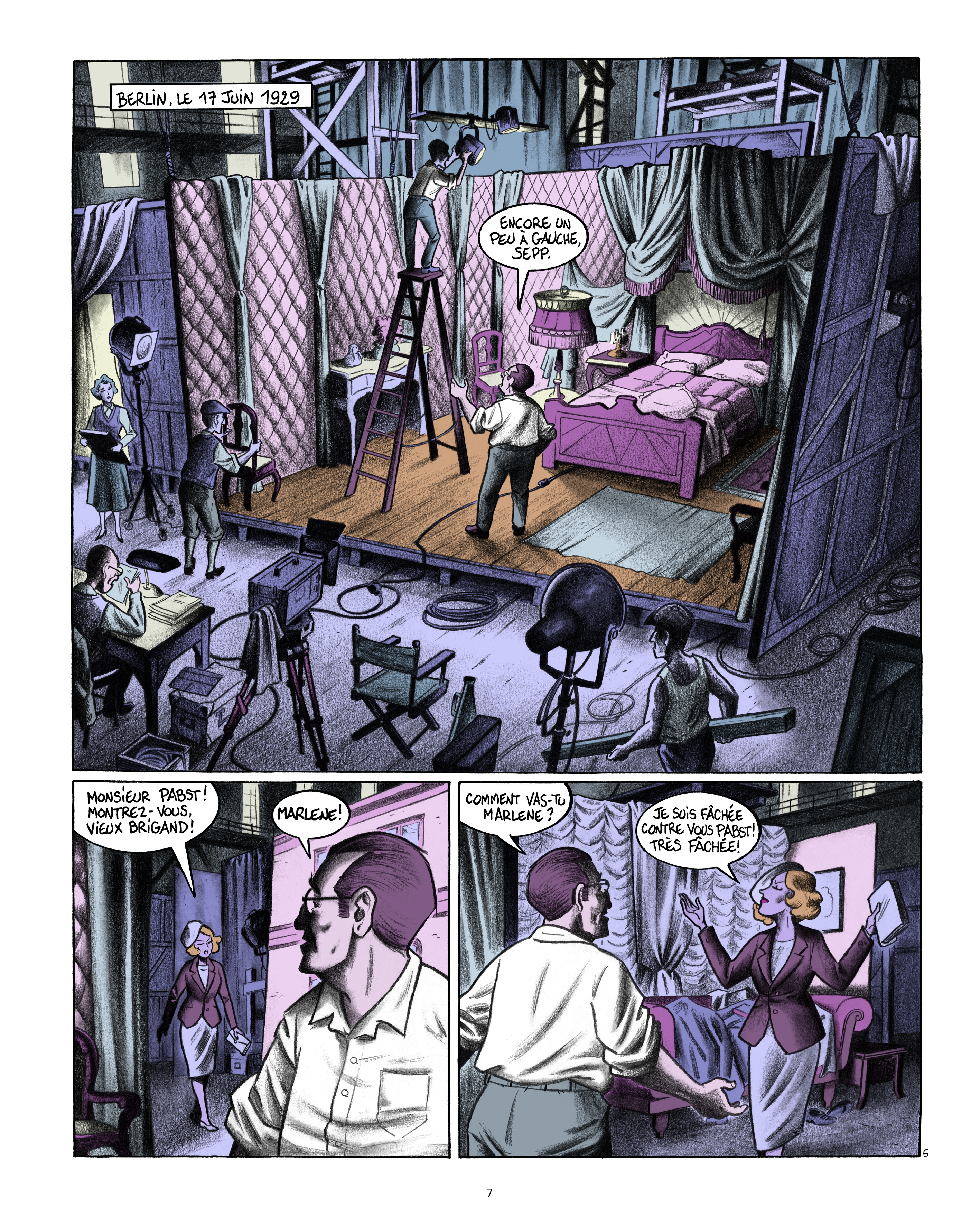 Résumé : Juillet 1929. Georg Wilhelm Pabst souhaite réaliser un troisième film avec Louise Brooks, mais celle-ci doit retourner aux États-Unis. Le cinéaste fait rapidement écrire un scénario par Bertolt Brecht afin de pouvoir le tourner sur le bateau qui ramène l’actrice au pays. Il opte également pour une innovation : ce sera le premier film européen parlant. Outre l’emblématique Louise, il engage un casting de rêve : Marlene Dietrich, Charles Vanel, le compositeur Kurt Weill et la chanteuse afro-américaine Adelaide Hall. Cette dernière s’attire les foudres de Sepp Allgeier, directeur de la photographie volontiers raciste…