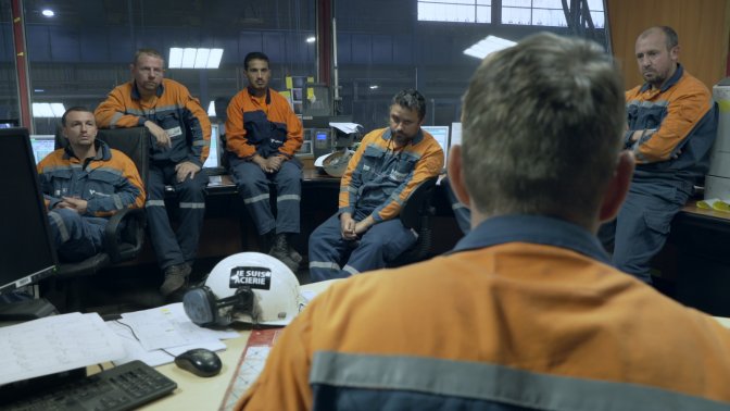 Critique : Ça commence par des visages. Ce sont des hommes surtout. Ils pleurent. Ils racontent l’effroi de toute une vie quand l’activité d’aciérie qui les nourrit depuis trente ans va fermer ses portes. On pense immédiatement à un président de la République, haranguant un chômeur du Nord sur le fait qu’il n’avait qu’à traverser la rue pour trouver un travail. Mais ces ouvriers entretiennent un rapport à leur travail presque charnel, en tous les cas identitaire. C’est toute leur existence qui est en jeu, ainsi que leur besoin de reconnaissance devant leur implication professionnelle. Celle de leurs familles, de leurs amis, et de tous ceux qui indirectement sous-traitent avec l’aciérie. Eric Guéret a partagé dix-huit mois avec les ouvriers, les cadres de ce fleuron de l’industrie, Ascoval. On assiste aux feux bruyants qui permettent à l’acier de fondre dans d’immenses cuves, provoquant des halos de lumière et d’énergie. Les feux s’allument dans le cœur des hommes en quête d’un repreneur.