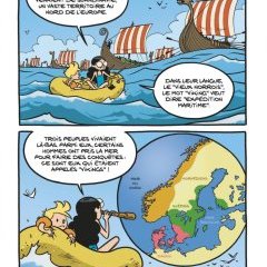Petit format mais grande ambition, tel pourrait être le credo du duo Savoia-Erre, qui livre une nouvelle fois leur condensé didactique avec humour et spontanéité. Les questions anodines du petit Nino vont ainsi de pair avec les réponses fines de sa grande sœur Ariane, qui tisse un fil clair et précis du début à la fin de l’ouvrage. On apprend ainsi beaucoup dans ce petit opus consacré aux Vikings, sur leurs coutumes, leurs voyages, leurs influences sur les pays européens au Moyen-Âge... Encore une fois, ce n’est pas un minimum de connaissances mais bien un maximum qui est résumé ici, et il faut souligner l’effacement des deux narrateurs, qui sont présents juste ce qu’il faut dans les pages, là où d’autres ouvrages didactiques leur font la part belle. Avec un fil conducteur toujours intéressant et perspicace, Fabrice Erre nous emmène dans les fjords, rétablit quelques vérités et souligne quelques mythes avec brio.