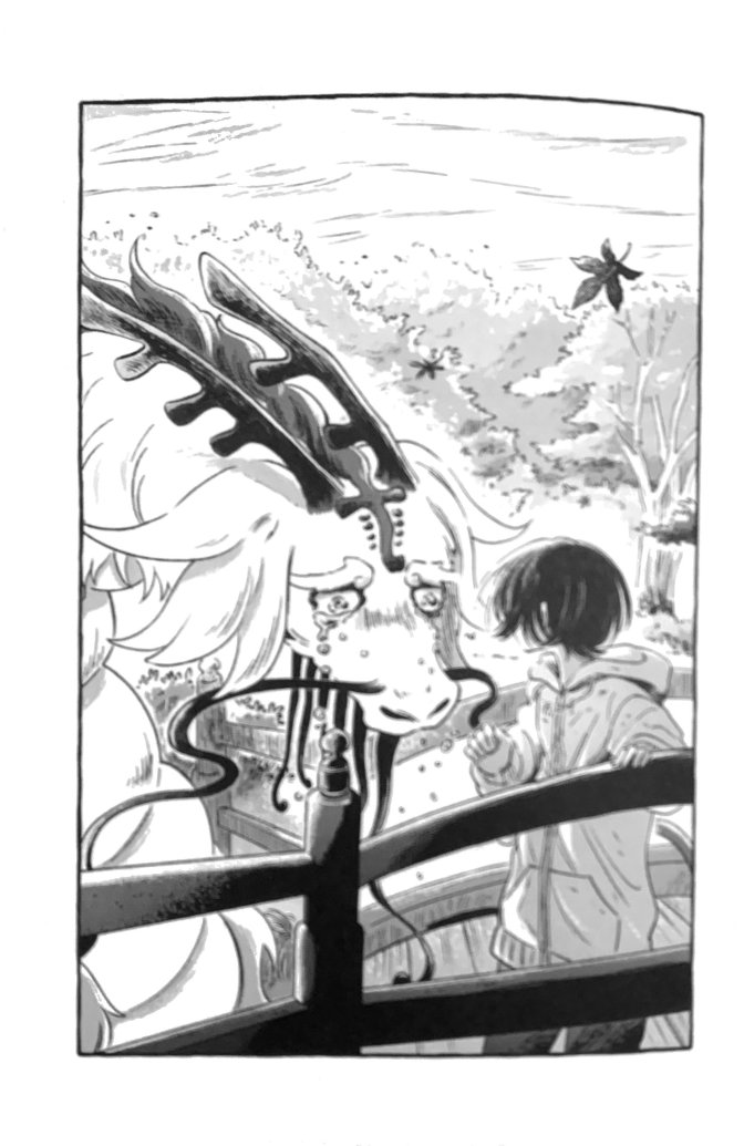 Critique : Avec le Garçon et le Dragon, nous avons affaire à un manga du genre « tranche-de-vie » dans toute sa splendeur, mais réussit-il à renouveler ce genre très représenté en ce moment ? Et c’est une réussite. Nous nous sommes laissés emportés par cette histoire, cette rencontre entre ces deux personnages solitaires. Un sentiment que le Dragon ressent depuis plusieurs siècles car malgré tous ses pouvoirs, ce dieu de la pluie et de la guérison n’a jamais réussi à trouver le remède à celle-ci.