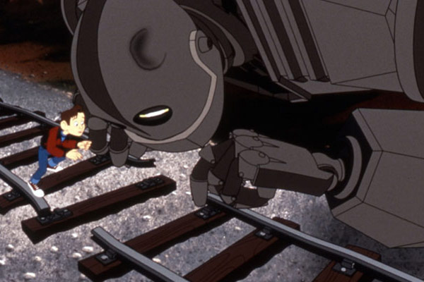 Mais Le Géant de fer, c’est aussi et surtout une générosité de tous les instants. La somme du plaisir d’un assembleur espiègle (à la J.J. Abrams, d’ailleurs producteur du Protocole Fantôme) se jouant même de sa propre création. Les scènes où les protagonistes se questionnent sur les formes d’art en métal sont à ce titre un régal. Et un long métrage dont le protagoniste se nomme Hogarth Hughes, ne peut que conforter les cinéphiles dans la célébration de ces petits clins d’œil, véritables déclarations d’amour à leur champ d’expression de prédilection. Un champ d’expression salutaire lorsqu’il s’agit d’évoquer la bêtise humaine pensant qu’on survit à une attaque nucléaire en se mettant à genoux sous une table ! The Iron Giant, ou la description d’une époque grotesque restituée par les rêves d’un enfant à la conscience bien supérieure à celle d’une armée entière ! Une réussite, redistribuée dans les salles obscures françaises à Noël 2016.