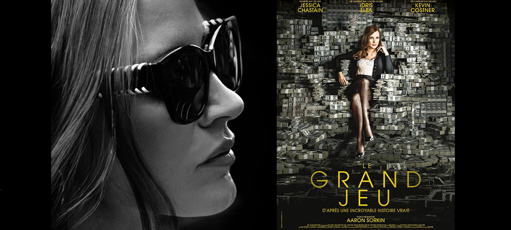Scénariste émérite de The Social Network et Steve Jobs, devenu aujourd’hui réalisateur, Aaron Sorkin démontre bien des talents dans sa construction d’un personnage particulièrement doué et intelligent, interprété ici par une Jessica Chastain toujours resplendissante. Un doublé gagnant, quoi qu’un peu factice.