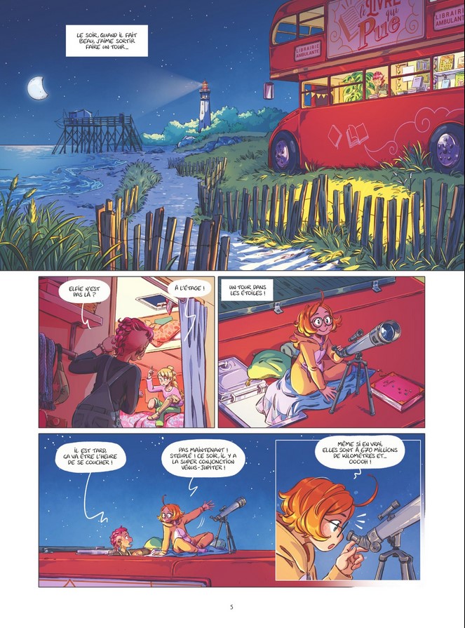 Nous nous rendons compte avec ce tome que cette vie en bus permet aux trois sœurs d’être réunies, mais les contraint à reprendre la route à chaque fois. Il est alors difficile de se fixer, de créer des relations, amoureuses entre autres, dans un âge où l’on s’enflamme rapidement. Tout cela nous ouvre de nouvelles portes et c’est tant mieux, car on a hâte de retrouver Elfie pour de nouvelles histoires, surtout si elles sont servies avec autant d’émotion.