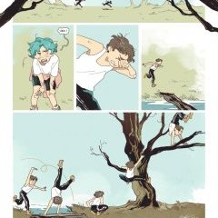 Critique : Faire un album sur une boucle temporelle peut avoir ce côté répétitif, voire rébarbatif, et au moment de découvrir le Jour du Caillou, le lecteur se demande comment il va appréhender ce cycle infini. Rassurons-le, le scénario de cet album est bien huilé, évitant les écueils de pages qui se ressembleraient trop. Déjà, le choix du personnage principal n’est pas celui qui subit la boucle, puisque c’est d’abord le point de vue de Mona qui nous est présentée, elle qui rejoue cette journée sans savoir qu’elle y est piégée à l’intérieur. Eko, le personnage qui subit, voit son désespoir seulement arriver en seconde partie. De fait, ce ne sont pas vraiment les petites différences entre les journées qui sont l’élément essentiel, mais bien les aléas du quotidien, les petits moments de doute et de mal-être qui régissent l’esprit et le corps de Mona. Tiraillée entre son amitié passée, le moment présent, un avenir à deux, elle donne à voir une humanité complète, une jeunesse aboutie, un personnage total en une seule journée.