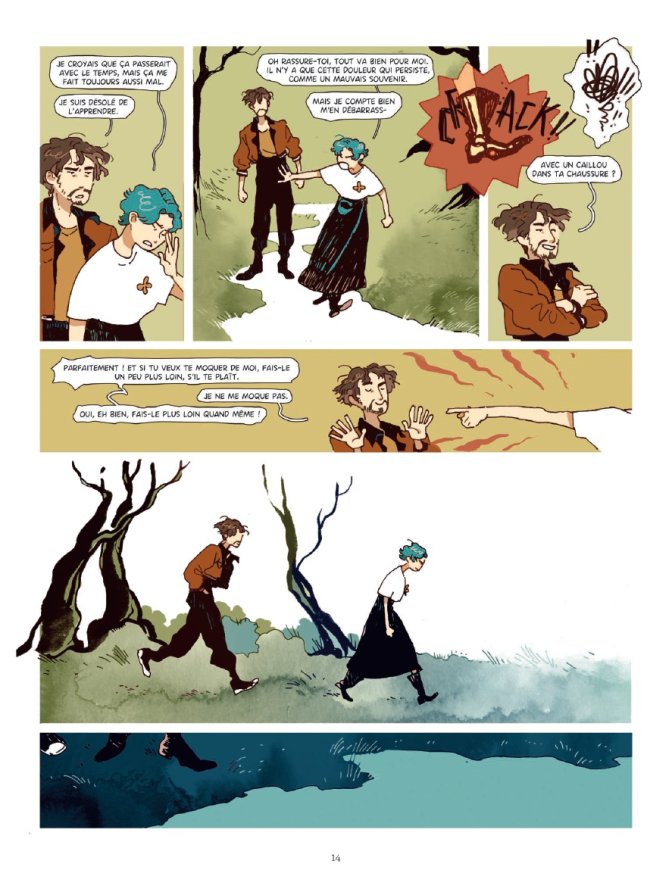 Le dessin est, lui aussi, loin d’être rébarbatif. Si les premières pages sont lentes, quasi nonchalantes, la lecture s’active, se fait plus rapide, plus emballée à mesure que les planches défilent, que le personnage d’Eko s’énerve et se prend dans un tourbillon qui l’emporte. Curieusement, c’est lorsque des cheveux blancs apparaissent, témoins discrets du passage du temps pour lui, que le rythme reprend son cours initial, plus subtil, le dessin voulant se loger dans un détail, une parole glissée ou un sourire esquissé. Avec son décor simple, une crique, un cirque et une route entre le tout, pas besoin de multiplier les regards fureteurs : le lecteur sait que si le moindre caillou est un indice, c’est bien le visage des deux héros qu’il doit scruter, pour voir comment cette histoire va se terminer...