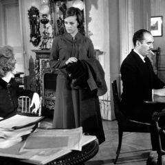 Et pourtant il y avait matière à une joie mauvaise ou sarcastique, mais Buñuel choisit la retenue (noir et blanc sobre, travellings soyeux, absence de musique) pour traquer l’envers du décor en un festival de perversions ; entre fétichisme, pédophilie, sadisme, meurtre et frustrations, les bourgeois respectables et leur domestique se dévoilent à Célestine dans leur noirceur la plus crue. Car c’est son regard qui nous guide, chacun lui offrant un bout de sa vérité, en général le plus retors. Dès le début et son arrivée en train, elle prend en quelque sorte la narration en main et nous fait visiter les abysses de cette maison-musée, alourdie d’une quantité ahurissante de bibelots précieux, et qui reflète la vie momifiée de Mme Lantaire. Son mari, obsédé et frustré, court les bonnes et, de guerre lasse, finira par s’en prendre à la pauvre Marianne qui, dans un très beau plan, pleure silencieusement. De son côté, le père de Madame se fait lire Huysmans (un passage « au hasard », violemment anti-bourgeois) et collectionne les chaussures féminines qu’il tient à cirer lui-même. Mais cette galerie, qui pourfend les maîtres, serait incomplète si Buñuel ne s’en prenait aussi aux domestiques, des femmes soumises et, au centre, Joseph qui jouit en faisant souffrir les bêtes et commet selon toute probabilité le viol et le meurtre d’une fillette.