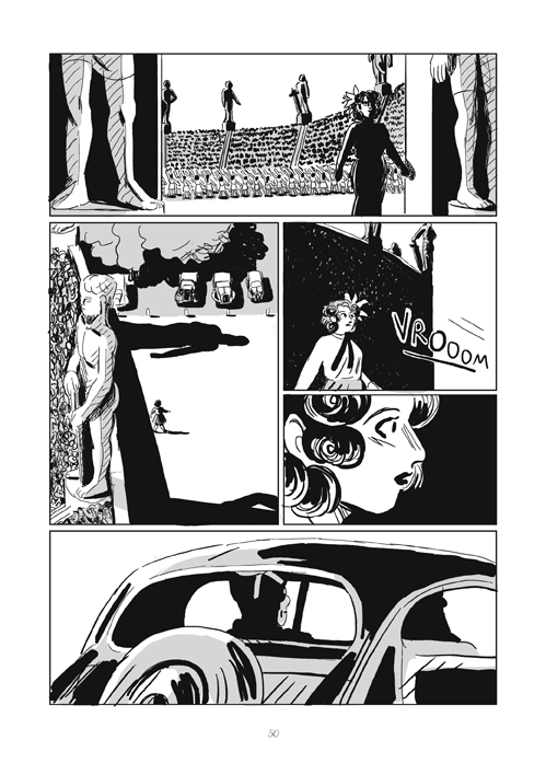 La dessinatrice Pauline Cherici – dont c’est le premier livre publié – opte pour un dessin sobre et très lisible en nuance de gris. Le travail significatif de reconstitution par le dessin facilite l’immersion du lecteur dans l’histoire, d’autant que les auteurs s’offrent quelques pleines pages qui donnent notamment à voir l’architecture et les objets de l’époque.