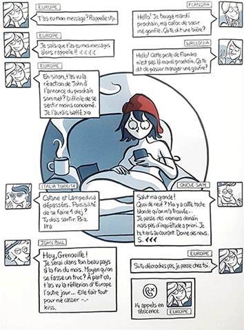 Dans ses questionnements elle se trouve confrontée aux morts en Méditerranée, à la réforme du code du travail, aux attentats de Charlie Hebdo et du petit Cambodge, aux sollicitations de Marine Le Pen qui tente de baliser le terrain en vue des prochaines élections en mai 2017.