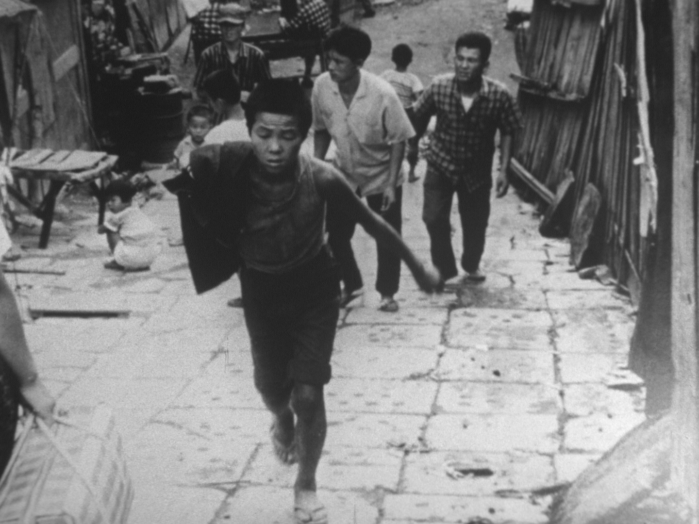 Notre avis : Le journal de Yunbogi est le premier film produit par la Sozosha, la société indépendante créée par Oshima. La liberté, c’est bien, mais comment faire sans argent ? Au milieu des années 60, Oshima doit faire preuve d’imagination pour parvenir à créer avec ces contraintes. Pour Le journal de Yunbogi il a utilisé des photos qu’il avait prises lui-même lors de son voyage en Corée. Il y superpose des commentaires inspirés par la lecture du journal d’un petit garçon coréen, best seller en son pays. L’idée d’utiliser des images fixes a été suggérée à Oshima par La jetée, le film de Chris Marker sorti quelques années auparavant. Il faut bien dire que le résultat n’a pas la même portée. Le film de Marker racontait une histoire. Le film d’Oshima a bien du mal à tisser une trame avec cette juxtaposition de clichés.