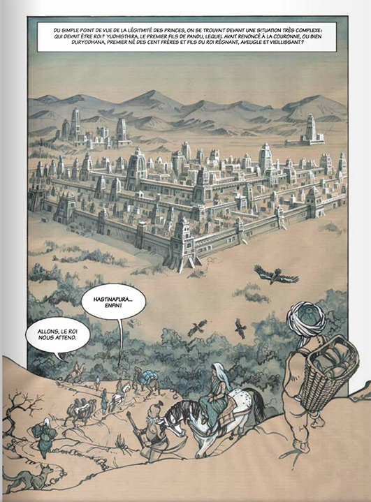 Cette œuvre fleuve est ici mise en image par Jean-Marie Michaud. Le dessinateur s’est basé sur l’adaptation de Jean-Claude Carrière, version forcément raccourcie car l’écrivain a choisi de n’adapter qu’en partie ce texte de plus de deux cent mille vers. Cette BD massive de plus de quatre cent pages sera votre premier pas dans le plus long poème du monde.
