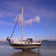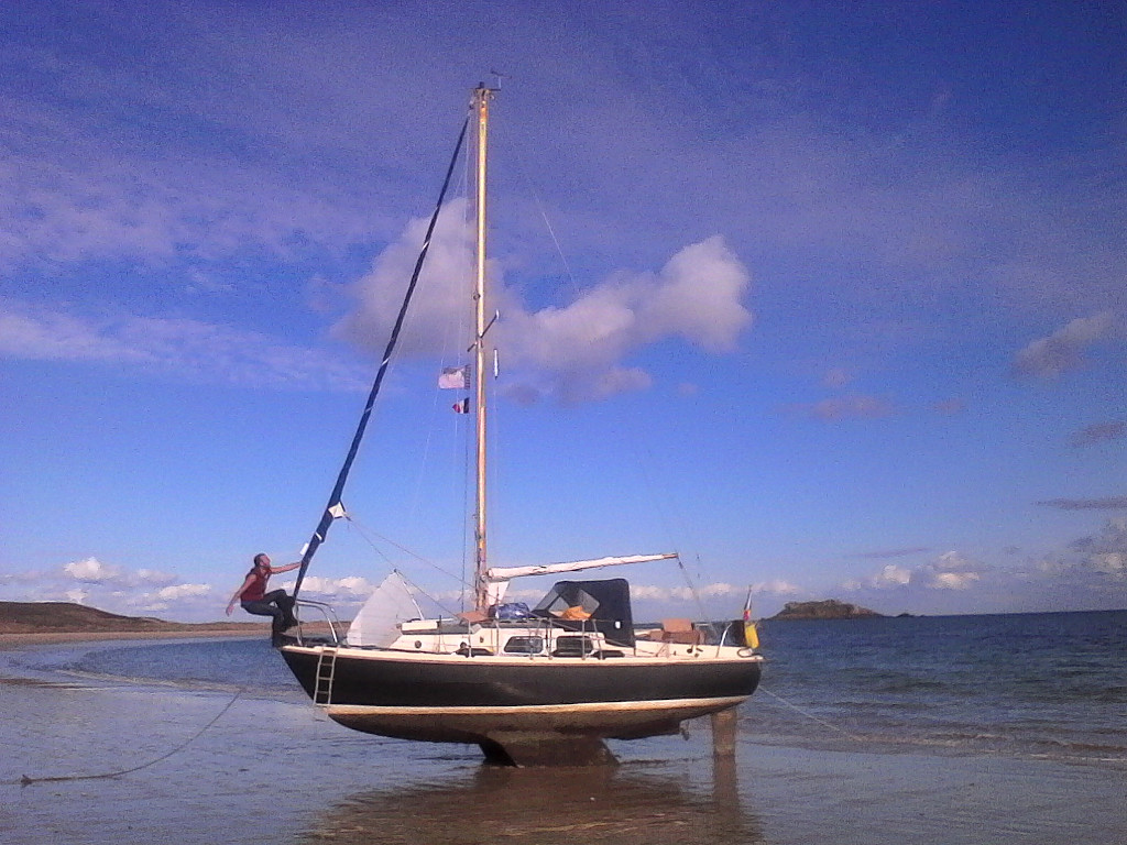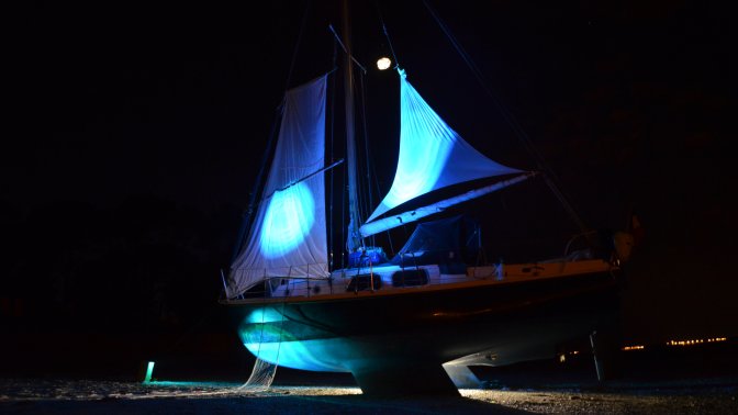 Il est 22h en cette fin de mois d’août sur la plage de Saint-Pierre Quiberon. Bien qu’à marée basse, la mer laisse entendre ses quelques vagues ensommeillées caresser la grève. À cette heure où s’estompent les dernières lueurs du crépuscule, se devine tout juste au loin, en contrebas, la silhouette d’un petit voilier biquille posé confortablement sur le sable. Baptisé « Phoque », ce Westerly Centaur de 1974 ne sortirait pas de l’ordinaire s’il n’était ce soir-là le théâtre d’une pièce intitulée Le Marin et la Lune. Peu à peu nimbé par l’obscurité, le vaisseau disparaît quelques instants, avant qu’une lumière rouge délicieusement lugubre ne l’ôte de la nuit. Sur le pont, vont et viennent par intermittence les comédiens Erwan Marjo et François Leclerc. Il s’agit pour eux de régler les derniers détails techniques avant la représentation. À 22h30, badauds comme spectateurs avisés sont au rendez-vous et le spectacle commence.
