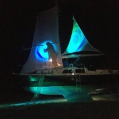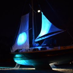 Durant l’été 2019, la Compagnie des Voiles a interprété « Le Marin et la Lune », pièce de théâtre (de plage) jouée à la nuit tombée depuis un petit voilier. Tenant lieu de décor, le bateau s’est échoué sur les sables de Bretagne au gré des vents, à la rencontre des spectateurs...