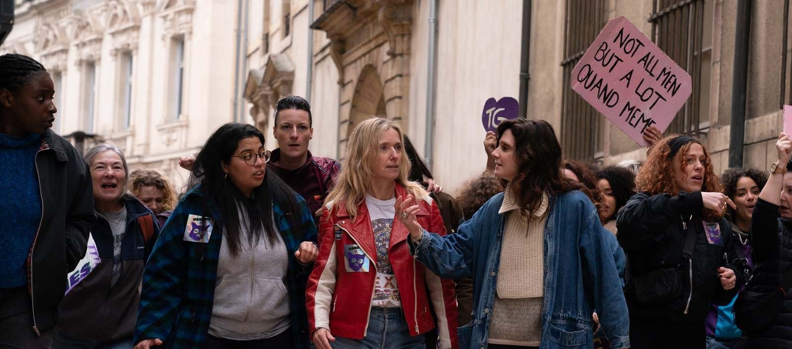Une inversion des genres bousculée par des péripéties inattendues que notre réalisateur facétieux multiplie à plaisir. S’il se complaît joyeusement dans une surenchère, il n’en perd pas pour autant son sens de l’égalité. On s’amuse du passéisme assumé des collègues de Simone autant que l’on rit des maladresses de ce groupe de féministes emberlificotées dans leurs contradictions et leur sincérité. Si le duo Drucker/Lavernhe, maillon fort de cette comédie joyeuse, assure le juste équilibre entre agresseur potentiel et victime éventuelle, le reste du casting n’est pas à la traîne. La quête d’excellence, éternellement contrariée, de Melha Bedia, apporte une belle dose d’humanité, tandis que la capacité de Judith Chemla à se déclarer chef de file, presque malgré elle, suscite l’empathie. Touffu, le scénario (coécrit avec Baya Kashmi, comme ce fut le cas pour Le nom des gens ou La lutte des classes, ne craint pas de s’aventurer en terrain miné en s’emparant sans circonspection d’un sujet clivant. Sans aucun doute, le traitement choisi par Michel Leclerc, même s’il offre plusieurs points de vue, ne fera pas l’unanimité mais il a l’avantage d’ouvrir le débat et d’envisager la possibilité d’un vivre-ensemble serein entre hommes et femmes, le tout dans la joie et la bonne humeur.