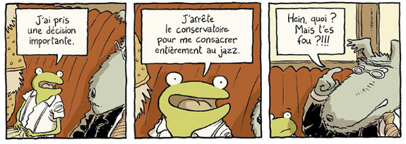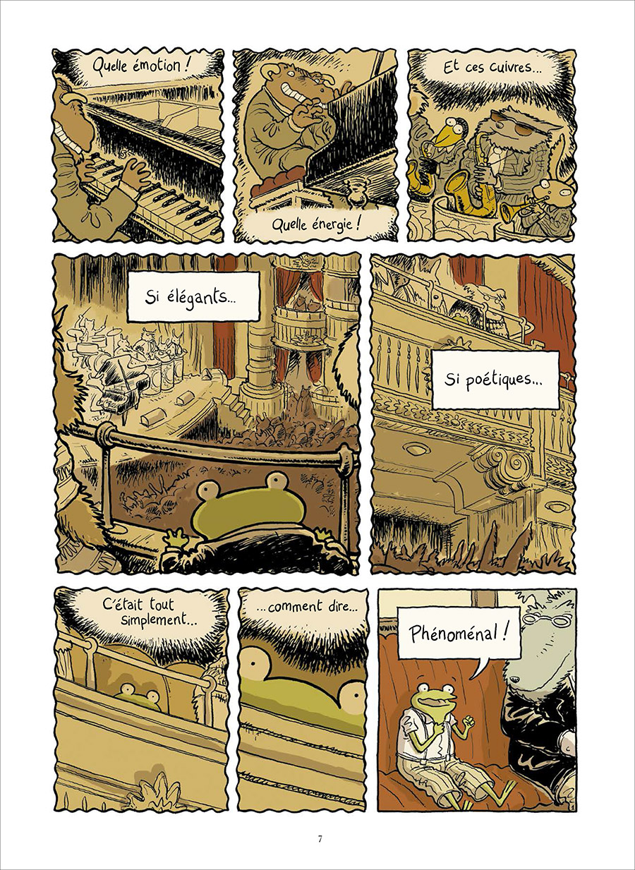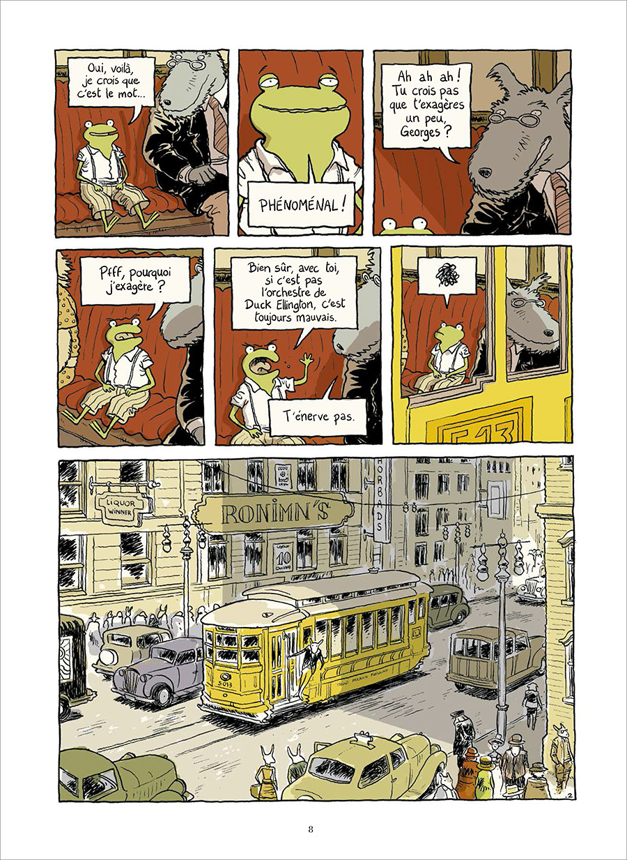 Croisement de Blacksad et La la Land, Le Petit Rêve de Georges Frog a créé un monde à part, digne d’une fable américaine de La Fontaine, avec son ironie, ses péripéties et surtout sa morale finale. C’est donc un petit monument pour un grand hommage à la culture jazz qui est rendu ici, et à l’image de la musique qu’il présente, sans bruit ni prétention.