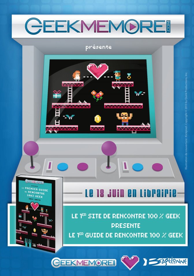 Pour trouver l’amour, il y a toujours l’aspect de la séduction qui rentre en ligne de compte. On joue avec lorsqu’on est étudiant à la fac, dans les bars ou les boîtes de nuit, au travail... Parfois même dans des toilettes ! (Si si, je vous jure ! Mais j’étais seulement témoin de l’affaire). En tout cas, Geekmemore et Bragelonne se sont associés pour donner un petit coup de pouce à la communauté pour les guider vers le high-score sentimental et le power-up de l’amour. Parce que oui, les codes changent quand on préfère mettre un tee-shirt Mario et acheter un pc de gamer plutôt qu’avoir un beau costume et une voiture qui brille. Alors le 18 juin, Le premier guide de rencontre 100% geek sortira, écrit par Eric Smith, édité par Bragelonne, propulsé par Geekmemore et acheté par vous (et moi sans doute). Ce livre, qui se veut être un guide humoristique bourré de références, signera le début d’une nouvelle collection 100% geek chez Bragelonne.