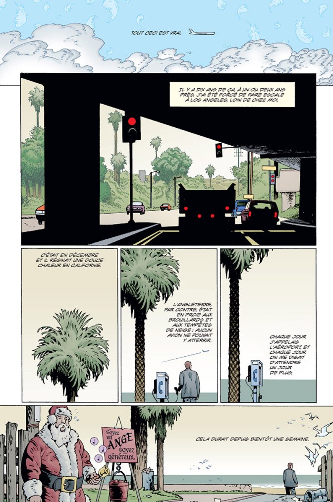 Le premier meurtre commence avec une mise en abîme assez impressionnante et déroutante : un personnage commence à raconter son histoire, ou plutôt un souvenir, et dans ce souvenir un vieil homme vient à sa rencontre sur un banc, et en échange d’une cigarette va lui raconter sa propre histoire... Qui n’est pas un simple souvenir, mais bel et bien le récit de sa vie comme ange au paradis, avant qu’il ne soit chassé. Cet ange, nommé Raguel, est l’incarnation de la vengeance. Il a été choisi et créé dans le but de venger la mort du premier ange, mystérieusement assassiné. Dans une cité où la notion de Mal n’existe pas, cette enquête recèle bien des surprises et de belles paraboles. Disons-le tout de suite, l’enquête aboutit : ce qui est moins précis, c’est tout le reste de cette histoire, depuis la chute de l’ange jusqu’aux pérégrinations sentimentales du premier narrateur. Qui croire ? Que croire ? Cet album, qui mêle la Bible et le polar, se concentre sur le paradis et la Création avec un grand C, et les émotions avec un e minuscule. Très ou trop humaines pour être d’essence divine, les émotions vont se bousculer, et le lecteur pourra se faire sa propre opinion sur non seulement le sens, mais aussi le message que veut porter ce comic.