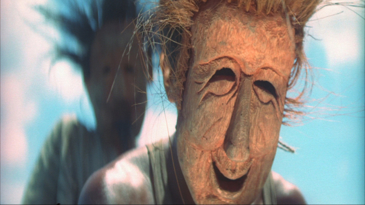 Mais évidemment toute la fin va jouer avec nos certitudes : les traditions semblent inoffensives ? Il y aura meurtre rituel . Elles semblent dissoutes par le progrès et le tourisme ? Les dernières séquences en cultiveront l’ambiguïté, aussi bien dans les dialogues qu’ à l’image. Bref, de quelque côté qu’on se place, le film ne cesse de dénier nos attentes et d’évoluer différemment. Pourtant le choix du plan fixe, majoritaire, donne un aspect figé qui semble s’accorder aux survivances tribales. Mais là encore, Imamura privilégie des cadrages curieux, qui peuvent faire le point sur un accessoire (une lampe au plafond, par exemple) et laisser flous les personnages ou les obliger à se contorsionner pour y entrer ; il questionne sa fiction, réfléchit sur la monstration et le frustration. Dans ce film plein de sexe et de pulsions, l’érotisme est d’ailleurs sans cesse contenu, déplacé (l’oreille qui démange) ou caricatural (les baisers goulus des masques comme des protagonistes).