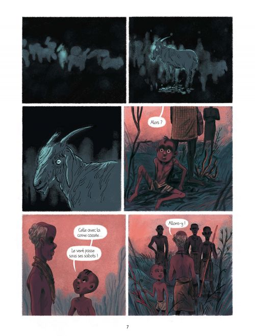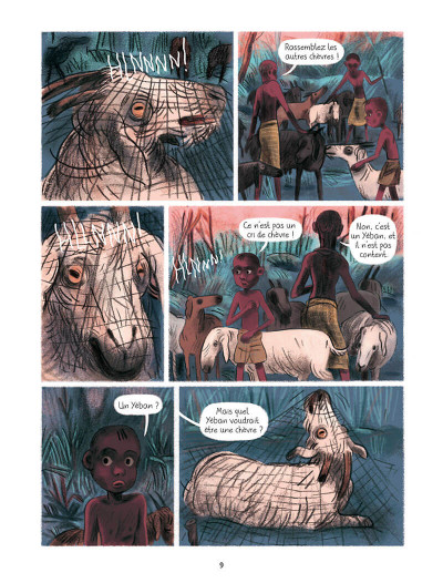 En se servant du folklore et des mythes d’Afrique de l’Ouest, Aurélien Ducoudray explore un thème universel et qui ne cesse de se répéter tant il est fantasmagorique : le pacte avec le diable. Ici, le marché avec un Yéban, sorte de génie qui est symbolisé plutôt qu’emprisonné dans le corps d’une hyène géante. Cet animal méconnu et mal-aimé (merci Le Roi Lion) de nos sociétés occidentales, est un totem emblématique du royaume des morts, dont le rire doit protéger et avertir plutôt que décourager ou punir. Ce voyage jusqu’au bout du monde et au-delà comprend plusieurs épreuves initiatiques relevant des mythes Dogons, dans le monde du rêve et du cauchemar, miroir parallèle de notre monde, mais aussi un saut brutal et inattendu dans le réel avec la colonisation et l’esclavage. Cette dernière fenêtre fait office de piqure de rappel, car elle se permet de malmener le génie, comme si l’intervention coloniale avait tuer le corps et l’esprit de certaines parties de l’Afrique, métaphore fréquemment employée pour désigner la fin de la magie et du mysticisme, que ce soit les druides ou les hogons.
