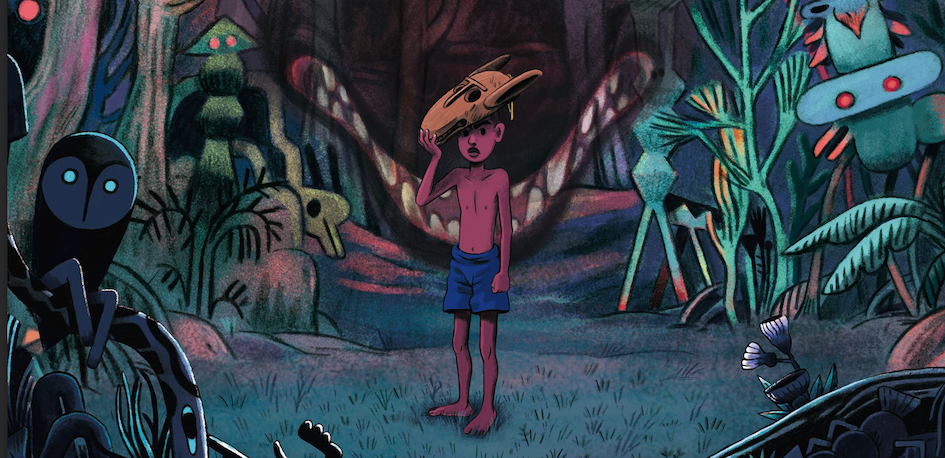 Pour envelopper et retranscrire ce récit mythologique, le dessin de Mélanie Allag est au service d’une action qui ne se presse pas, et peut donc insister sur des détails, comme une entité qui rétrécit, un sourire qui se fait plus triste ou des yeux qui prennent le pli de la peur. Si la couverture et certains passages font éclater les couleurs comme une jungle tropicale tirée d’un songe, la plupart des pages adoptent en vérité des teintes ocres et rocailleuses, brunes et blafardes pour enserrer ses personnages, Kana et le Yéban apparaissant grâce à cela de plus en plus comme un duo complice, le caractère menaçant du dernier s’estompant très vite pour créer un lien, que le dessin vient habilement souligner.