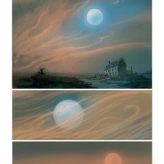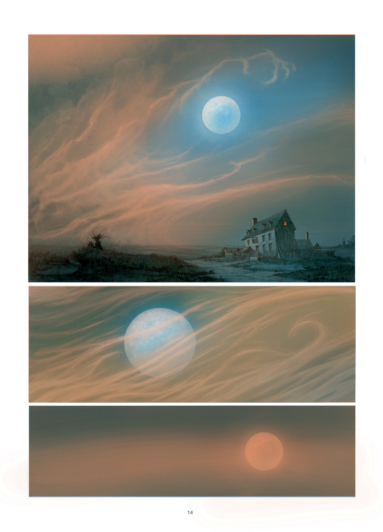 Ken Broeders crée une atmosphère pesante qui s’accroit tout au long du récit. La brume est représentée comme un voile qui bouche le paysage, et le jeu de couleurs – avec des teintes jaunâtres ou bleutées – renforce le sentiment de malaise qui transpire des planches. La brume confine la population, si bien que le récit se transforme progressivement en huis clos. Bientôt séparés de Jean, parti chercher de l’aide, Madeleine et Benjamin se retrouvent face à face, et doivent faire face à différents dangers. On découvre finalement que la brume n’est peut-être pas la principale menace qui pèse sur l’auberge…