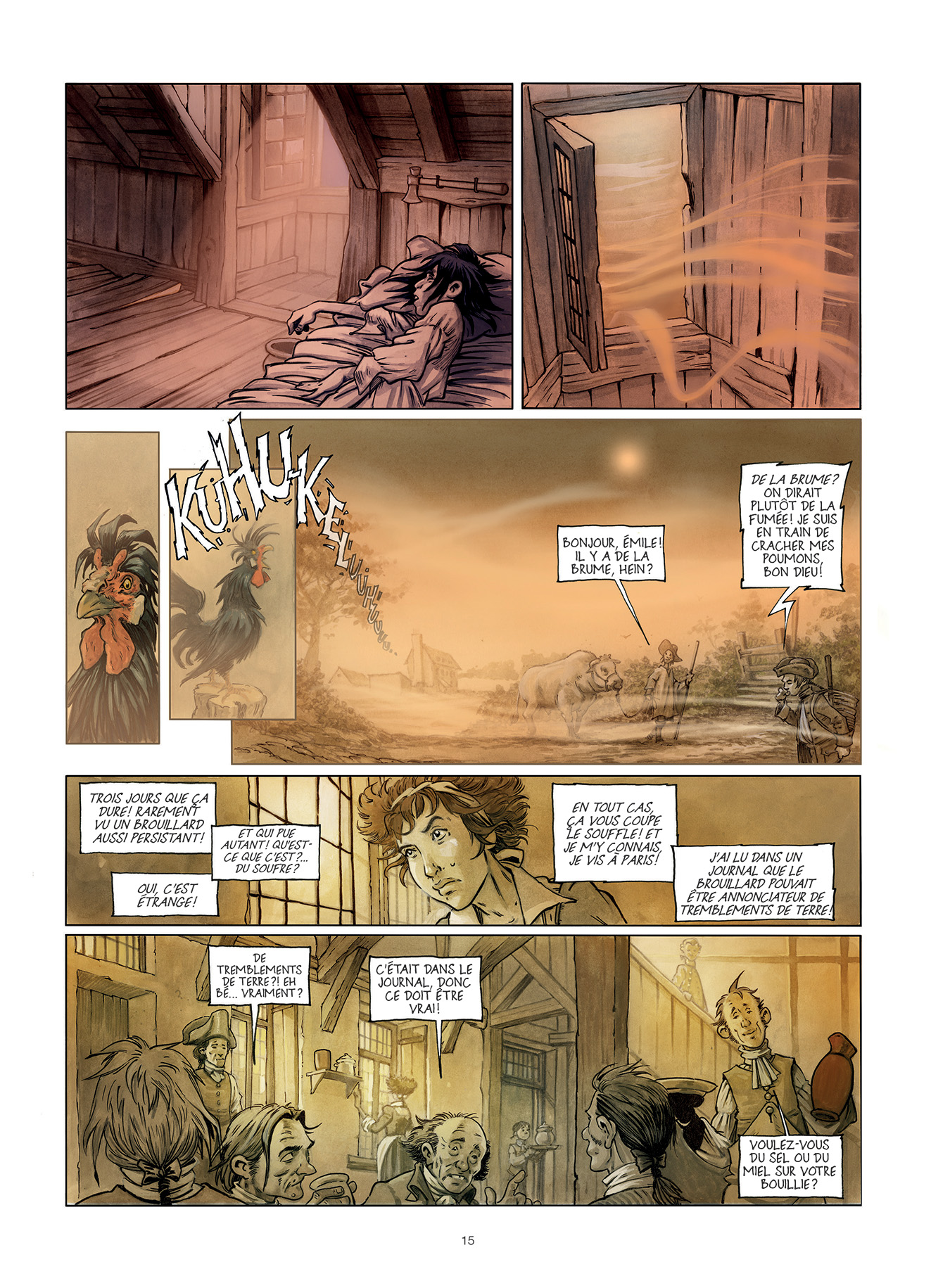 Très soigné graphiquement, avec un dessin réaliste et expressif qui laisse une part importante à l’action, Le souffle du diable est un thriller enlevé qui joue sur les croyances et le mystère. De cette façon, Ken Broeders met en lumière les conséquences désastreuses d’une catastrophe naturelle, quelques années avant la Révolution française.