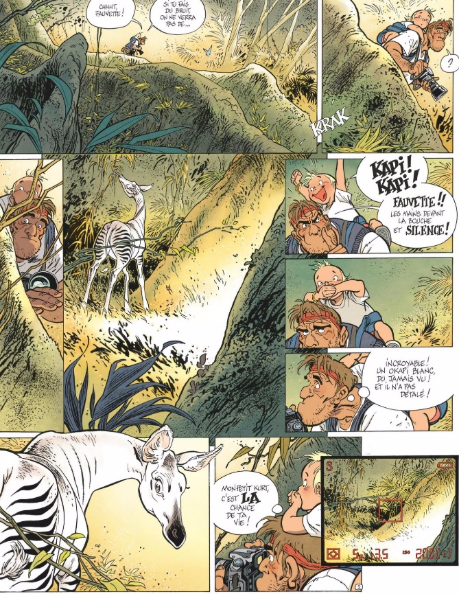 Il y a ensuite ces mystérieuses toiles révolutionnaires d’un auteur anonyme qui arrivent à la galerie Bernard et pour lesquelles le cheik Ibn-Mah-Zout est prêt à payer des fortunes. Et Fantasio qui est chargé par son journal de trouver l’artiste génial, créateur de ce nouveau courant pictural appelé "le zooïsme. Il y a enfin Noé, ce dompteur extraordinaire qu’on avait découvert dans "Bravo, les Brothers" qui est de retour en ville avec toute sa ménagerie et une gamine... qui n’est autre que sa propre fille, une adolescente ballottée depuis toujours et qui débarque de son Canada natal... Et que Noé va confier à Spirou ! Ce Spirou signé Frank Pé et Zidrou est une fable humaniste et écologique menée par deux auteurs au sommet de leur art !