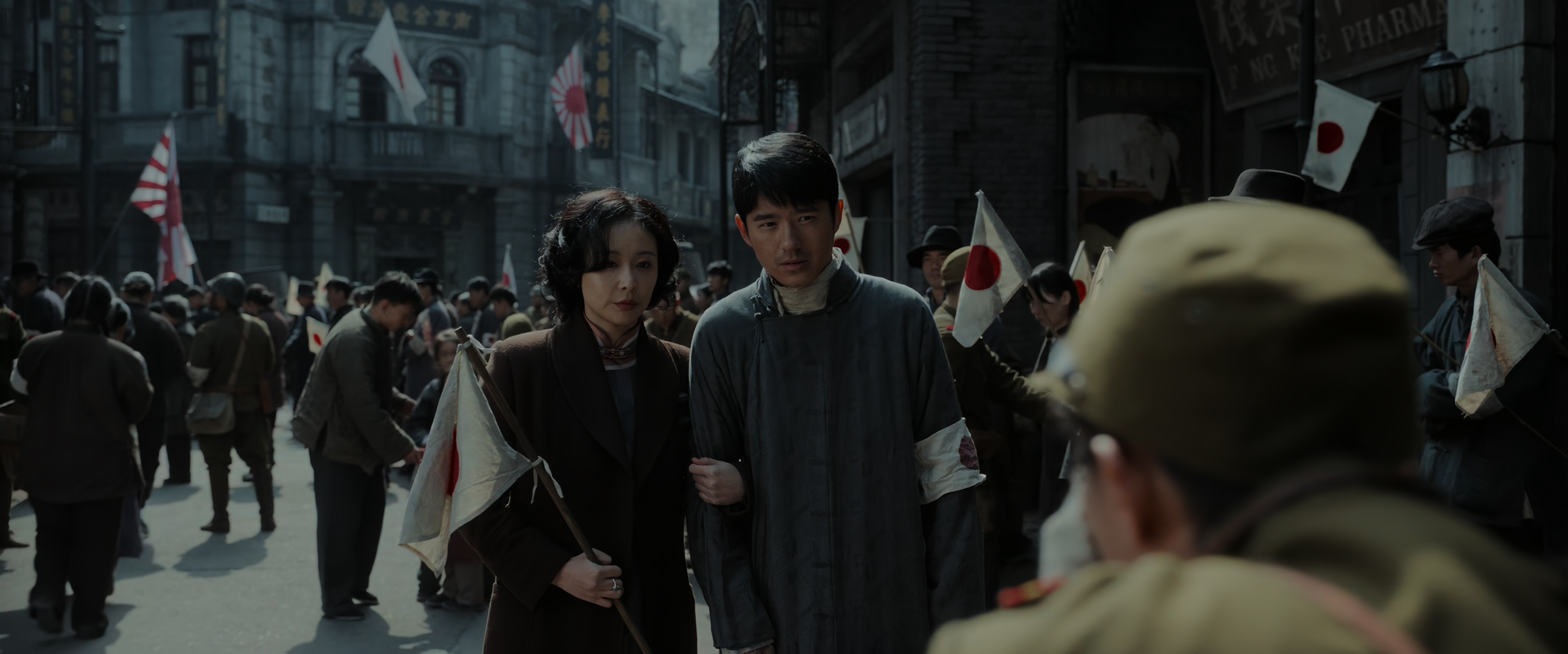 Ao Shen, dont le film est le troisième long-métrage et le premier à sortir dans les salles françaises, parvient certes à traduire l’angoisse permanente qui étreignait les habitants de la ville confrontés à l’armée japonaise, mais il traite le sujet sans la finesse et le sens de la nuance de ses prédécesseurs : cherchant avant tout à prendre le spectateur par les sentiments, il alterne des scènes mélodramatiques, des dialogues célébrant le patriotisme des habitants chinois de la ville et des séquences, pour certaines difficilement soutenables, qui donnent à voir les violences perpétrées par la soldatesque de l’Empire du Soleil Levant.