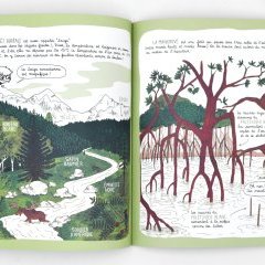 Critique : Gaëlle Alméras est une autrice-illustratrice passionnée d’art, de sciences et de nature. Elle collabore pour la troisième fois avec les éditrices de La Maison Georges. Dans ce nouvel opus, elle parvient à susciter la curiosité des petits et des plus grands, pour des espaces qui dans nos contrées européennes sont à la fois loin et proche de nous : les forêts.