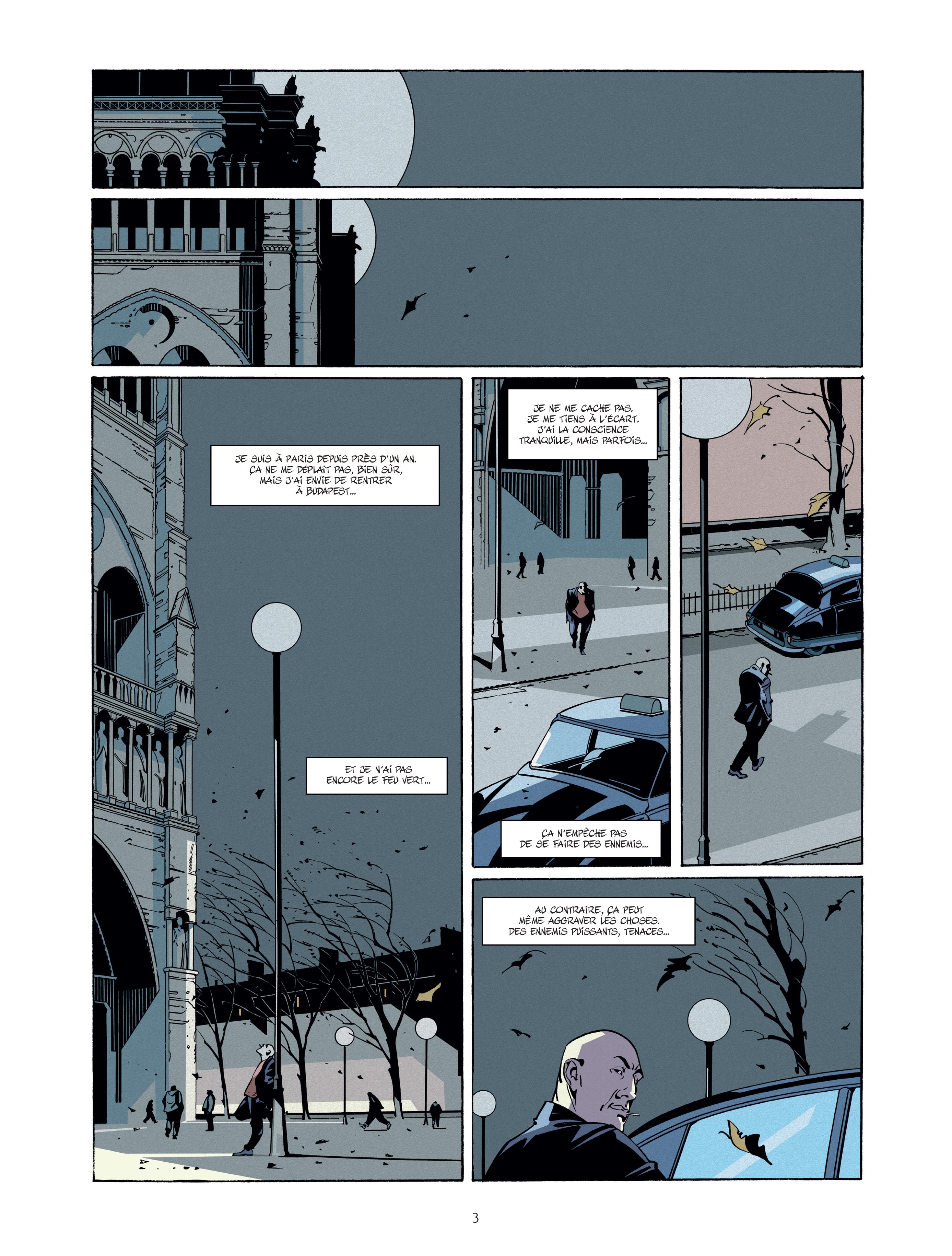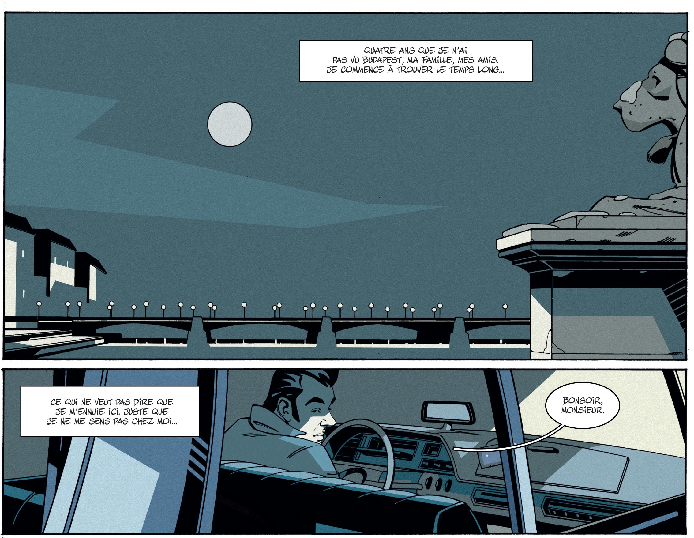 Une ambiance particulière se pose dès les premières pages. Comme dans tout bon film noir, c’est une voix off qui ouvre le bal au cœur de la nuit. Celle de Zoli. Ce mystérieux Tatoueur, digne héros malgré lui, va mettre le pied dans une sale histoire. Enfin, plutôt, une sale histoire va lui mettre le pied dessus. Cette rencontre étrange avec Lazlo, un chauffeur de taxi d’origine hongroise lui aussi, va se révéler pleine de surprises. Et nous ne dévoilerons rien, car dès la première discussion entre les deux hommes, quelque chose d’intrigant se dégage.
