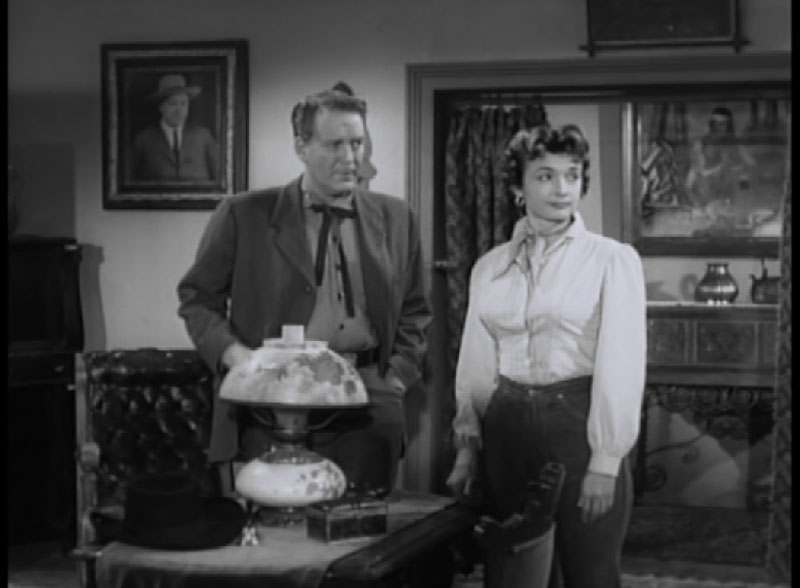 Notre avis : De la prolifique carrière de Franck McDonald on ne connaît en France presque rien et ce western, à l’image de beaucoup d’autres, n’y est même jamais sorti. On n’est pas sûr qu’il faille le regretter, tant cette toute petite production manque à l’évidence de moyens et d’ambitions. Pourtant, les amateurs du genre auront un aperçu intéressant d’un pan ignoré du cinéma, les innombrables westerns de série qui inondaient les salles dans les années 50 avec leurs extérieurs réduits, leurs acteurs sans charisme au jeu parfois défaillant et leurs scènes d’action limitées. Le trésor des collines rouges possède toutes ces caractéristiques négatives mais repose de plus sur un scénario étrange qui multiplie les personnages jusqu’à l’incohérence, entre apparitions et disparitions arbitraires. On s’amuse de ce que l’enjeu essentiel, le combat de deux grands propriétaires, soit sacrifié et tourne rapidement court au profit d’une machination assez absconse, mais aussi de ces quelques dialogues stéréotypés (ah ! Le mourant et ses dernières paroles) ou des nombreuses séquences d’action qui sont racontées, faute sans doute d’argent.