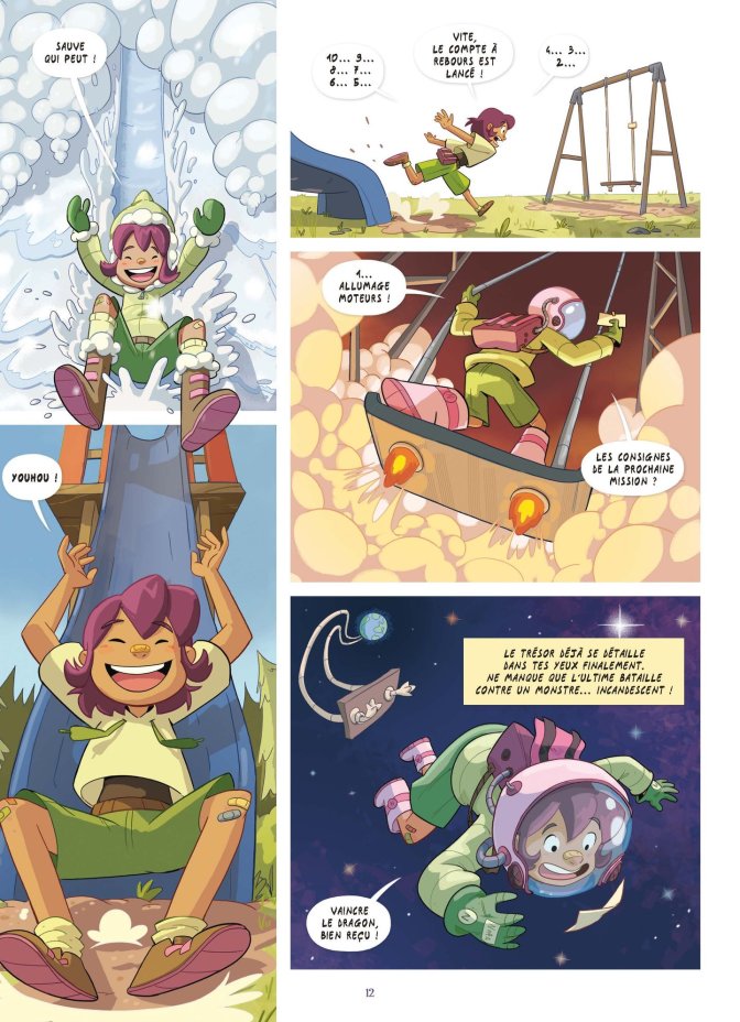Résumé : Nora ne cesse de s’imaginer dans des situations périlleuses en laissant aller son imagination. Celle-ci semble pourtant la rattraper lorsque son papa, qui la surveillait au parc, s’est subitement volatilisé...