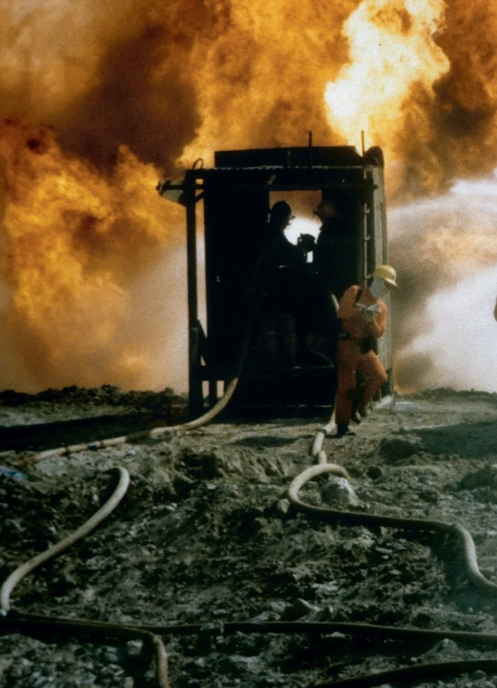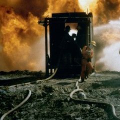 Le désert du Koweït, ravagé par les puits de pétrole en feu, devient un espace sans horizon moral clair. Il n’est plus un décor, mais un corps estropié, traversé de cicatrices, fluides et convulsions. C’est par l’accentuation de la matérialité — le feu, la fumée, la boue, les surfaces brûlées — que le film acquiert une fonction mémorielle. Le témoignage n’est plus narratif ou factuel, il est inscrit dans la matière même des images.
