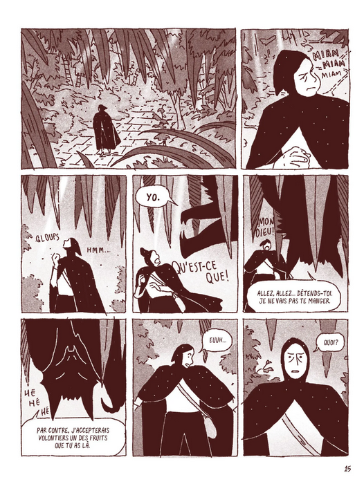 Le dessin joue lui aussi de ce double aspect, avec ce noir et blanc rétro, très sérieux parfois, très profond lorsqu’ils touchent aux étoiles ou au néant, mais aussi très léger quand il y a un barbecue au soleil couchant. On se sent bien en lisant ces pages brunies, ces paysages assez exotiques sans paraître incroyables, il y a en effet comme une brume matinale ou une jolie lumière crépusculaire qui envahit tout, faisant ressentir dans cette étrange péripétie un je ne sais quoi de calme et de volatile.