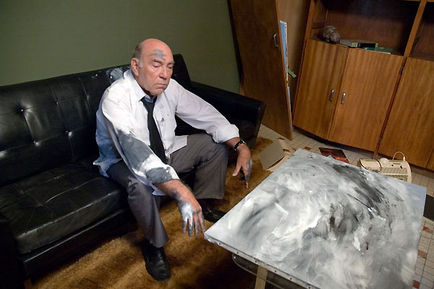 Le décor est vite planté, dans une cité hors du temps et de toute réalité perceptible, à l’architecture clairement inspirée par Le Corbusier. Tout est sous contrôle, les formes et la matière apparaissent comme la logique de cette existence. Il n’est donc pas anodin que Fernandez ait choisi de mettre en scène un artiste plasticien, figure emphatique du cinéaste, ne cessant de réinventer sans cesse la même toile. Le vieil homme est dans un état de perpétuel recommencement ; sa personnalité et sa démarche incarnent l’état de l’évolution continuelle de l’univers. Cette mise en question de la nature du monde et de l’existence humaine est au cœur de la réflexion menée dans Léger tremblement du paysage. Un sujet scientifique empli d’interrogations philosophiques, d’où la multiplicité des doubles sens possibles dans l’interprétation des images (simples en apparence comme les courses de voiture, mais qui dévoilent des possibilités de compréhension multiples : le conducteur cherche à contrôler la vitesse du véhicule). Néanmoins, point de lourdeurs métaphoriques ; Philippe Fernandez prend soin de contrebalancer la thématique ardue qu’il déploie par une légèreté ambiante et un humour frappé au coin du bon sens.