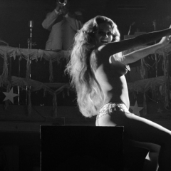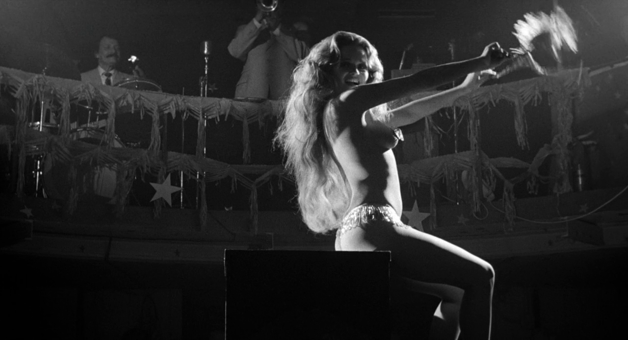 Ce qui frappe à la vision du film, c’est le magnifique noir et blanc qui joue avec les ombres et les atmosphères. Les séquences de cabaret, en particulier, semblent creuser le noir pour façonner un visage barbu et épuisé – et la performance de Dustin Hoffman est d’une finesse et d’une richesse inouïe, sans rien des tics qui gâchent parfois son jeu. Fosse utilise également un montage qui alterne un sur-découpage (la première séquence de strip-tease, avec des plans sur Valérie Perrine, sur les regards voyeurs et… le tiroir-caisse) et de longs moments (le stand-up raté, en imperméable, qui se prolonge jusqu’au malaise) avec une virtuosité fébrile. De même un certain esthétisme voisine avec des plans volontairement plus relâchés, jusqu’à l’imitation du reportage télé au moment de la mort de Lenny. Mais cette recherche très maîtrisée est au service d’une vision du monde et du cinéma : comme dans Cabaret (1972), comme dans All that jazz (1979), Lenny repose sur l’idée d’un spectacle permanent ; non seulement le stand-up est un commentaire de la vie, mais c’est la vie elle-même qui devient spectacle ; tribunal et même vie privée sont des jeux incessants, qui toujours se fracassent sur la réalité, que ce soit les condamnations, la drogue ou la ruine. En ce sens, l’itinéraire du comique est focalisé sur sa chute, douloureuse et pathétique ; point d’orgue de cette descente aux enfers, la réplique d’un journaliste teinte d’une noire ironie ce parcours : car ce qui a créé le scandale, les provocations, les obscénités, n’en étaient plus au moment de sa mort. Tout ça pour ça. L’échec artistique dédouble alors l’échec personnel, en une vertigineuse réflexion (soutenue par des répliques de stand-up) sur la dérision de toute existence. Rien ne réchappe de ce jeu de massacre, tous les personnages sont des médiocres voués à la chute. Le seul qui s’en sort, très bien, c’est l’agent qui vend des disques et négocie les droits d’un film : mais le résultat est le même, le triomphe de l’argent n’empêche pas la faillite morale. Si l’on fait le compte, malgré un début plus enlevé, rares sont les moments lumineux dans ce film qui pose un regard noir sur une existence : mais la force de Fosse est, par une maîtrise cinématographique sans faille, d’élever ce destin singulier en un exemple universel, sinistre et sans appel.