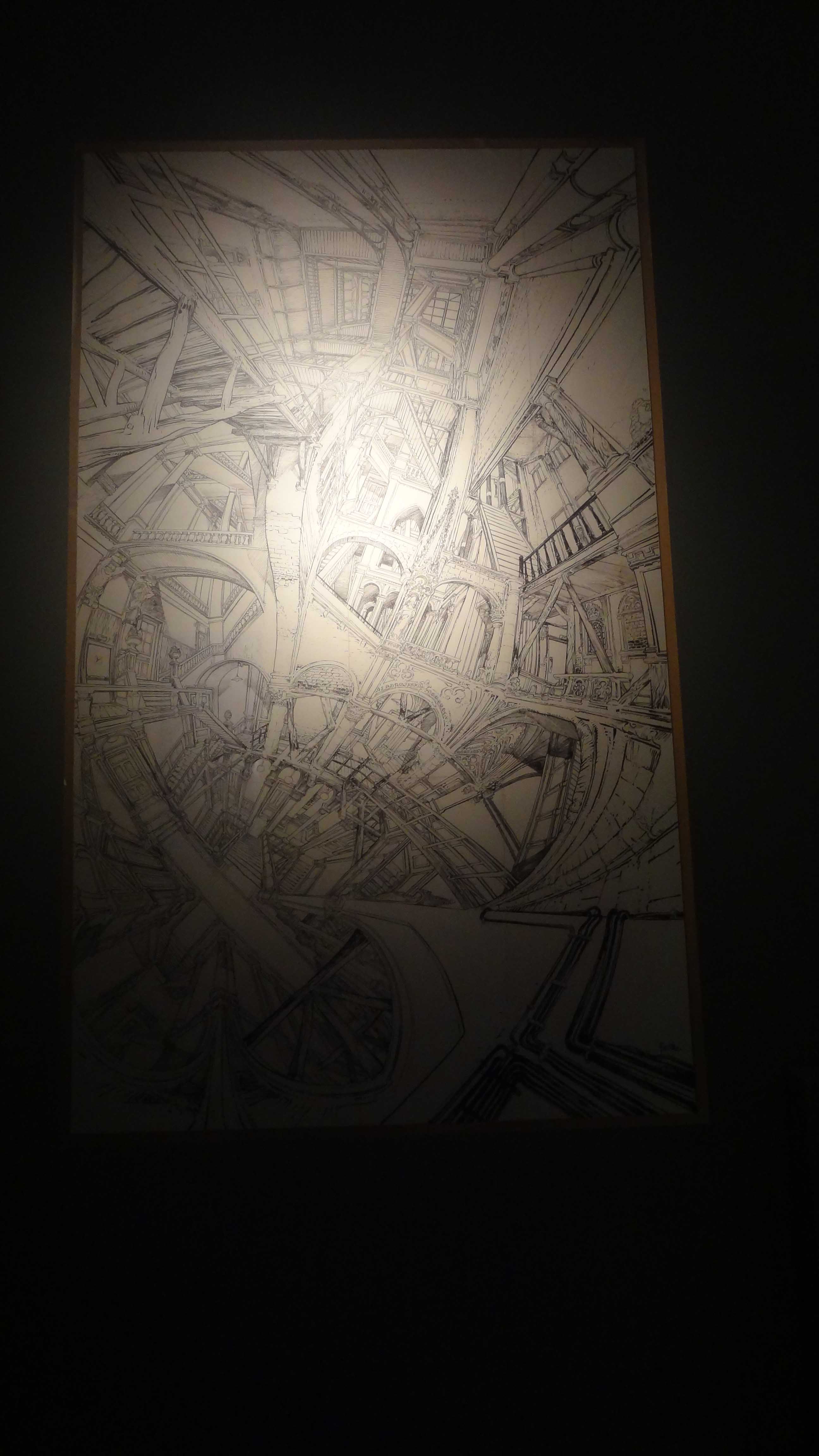 De nombreuses planches originales, un régal pour les yeux ! On peut y voir les encrages, les crayonnés et autres étapes de travail avant colorisation, selon les planches, pour appréhender par l’exemple la méticulosité de François Boucq.