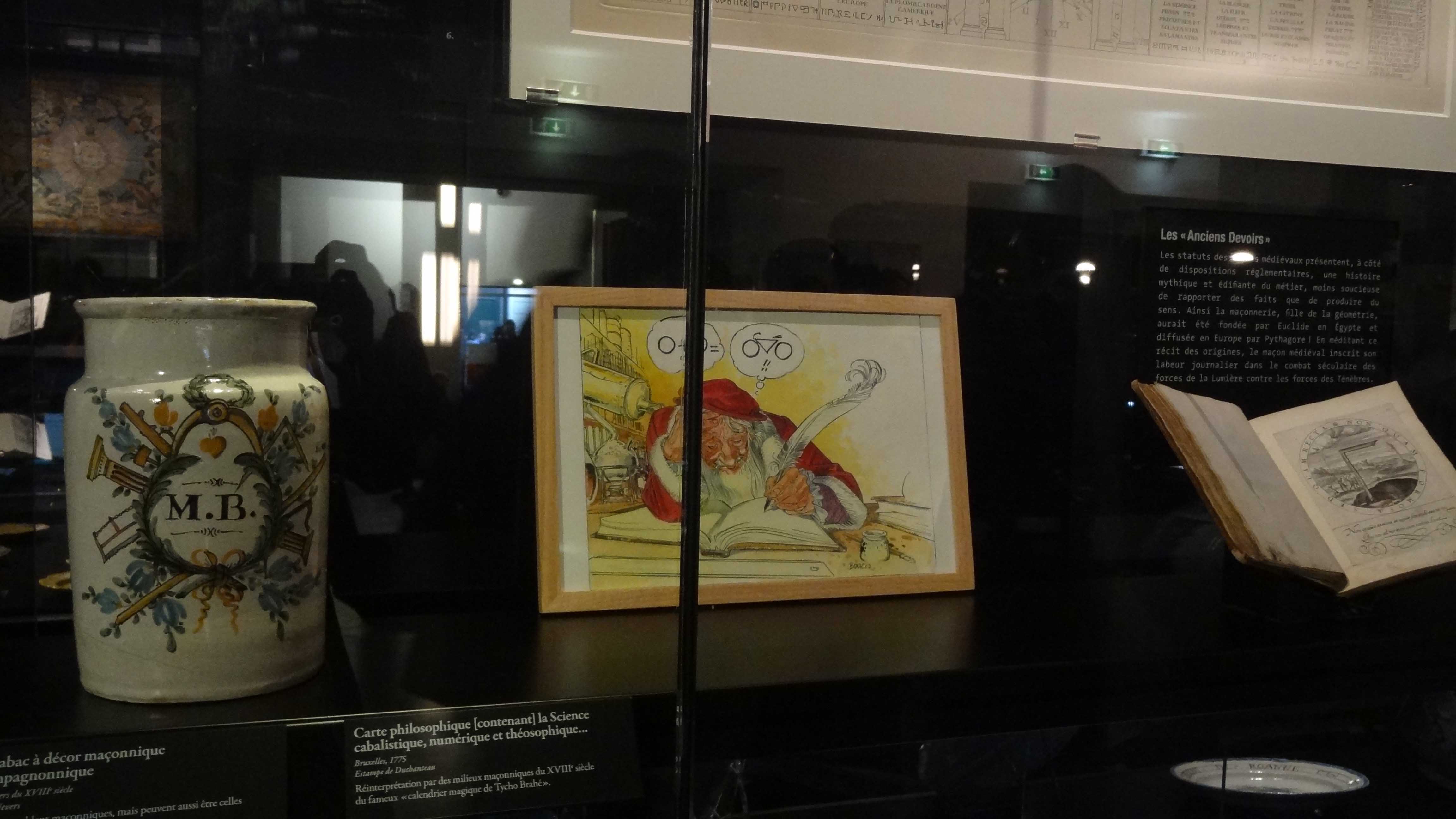 Le musée présente une exposition permanente consacrée à la franc-maçonnerie (ça se justifie aisément) et une petite salle pour les expositions temporaires. C’est là que François Boucq est venu installer et présenter ses travaux...