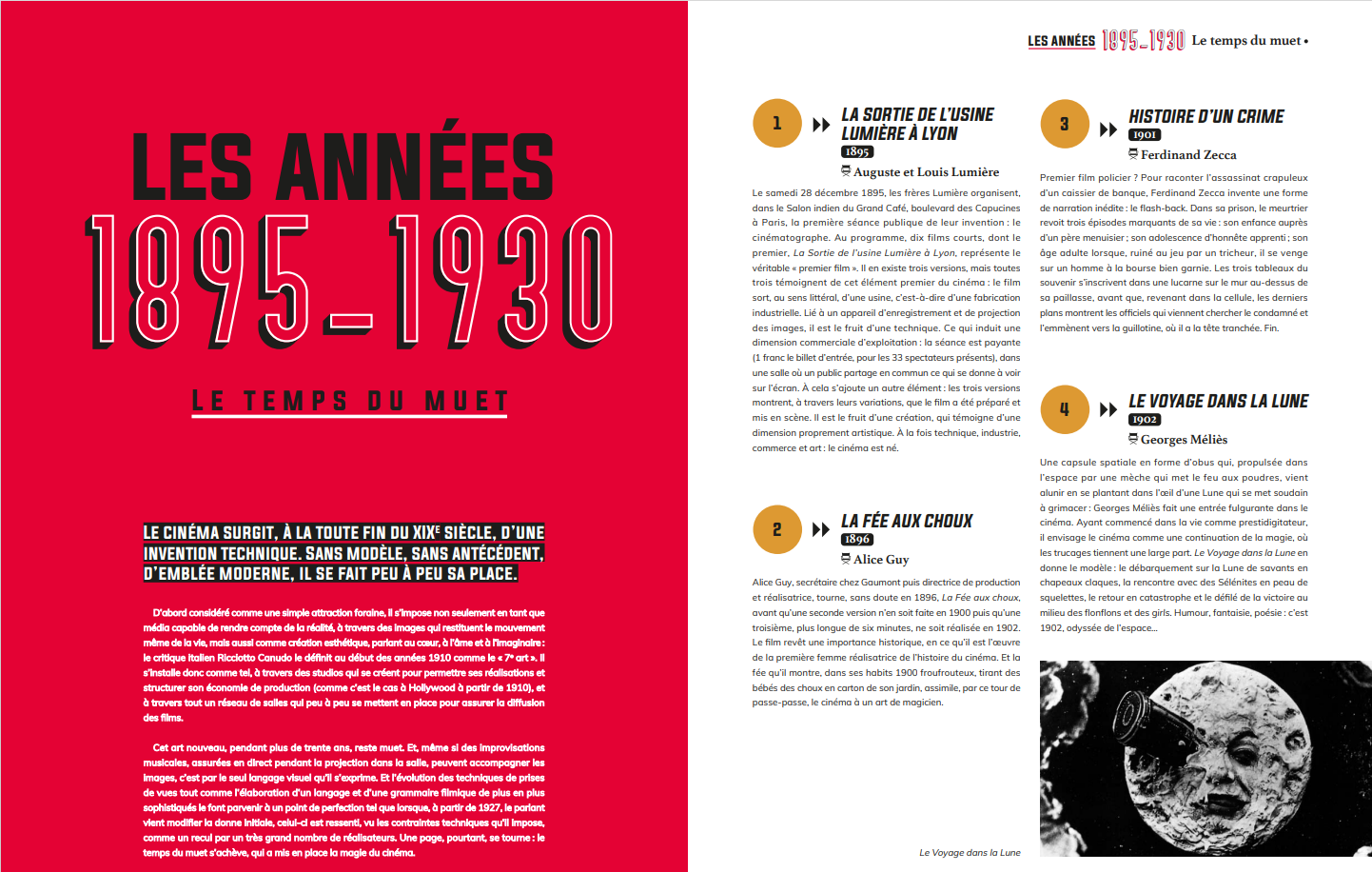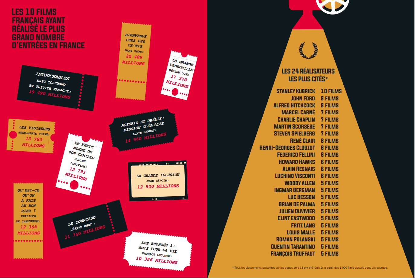 La qualité de l’édition offre un cadre particulièrement agréable à la lecture. La mise en page brille d’efficacité, et l’œil se trouve attiré par les planches aussi modernes que ludiques. Les illustrations ne prennent jamais le pas sur le contenu, mais facilitent et balisent la lecture. Concernant les quelques lignes qui accompagnent les mille films choisis, il y a peu à dire. Partant du principe qu’autant d’œuvres seraient référencées, il était difficile de faire plus qu’un paragraphe pour chacune d’elles, si synthétiques soient-ils. Cependant, Jean Serroy a le bon goût d’enrichir sa visite de l’histoire du cinéma.