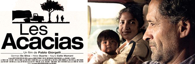 Notre avis : Voici un long métrage remarqué à la Semaine de la Critique du Festival de Cannes 2011 : outre le Prix ACID et celui de la (Toute) jeune critique, il a remporté la très convoitée Caméra d’or attribuée à la meilleure première œuvre, toutes sections confondues. Les acacias confirme la vitalité du cinéma argentin, décidément très créatif depuis une dizaine d’années : de Whisky à L’homme d’à côté, on ne compte plus les réussites dans des genres très divers. Celui-ci emprunte les conventions très codifiées du road movie qu’il greffe à celles du drame sentimental (deux désœuvrés affectifs qui finiront par s’entendre) et du réalisme social, encore que Paolo Giorgelli n’appuie pas avec ostentation sur les manettes du misérabilisme et du naturalisme, deux péchés mignons d’un certain cinéma sud-américain.