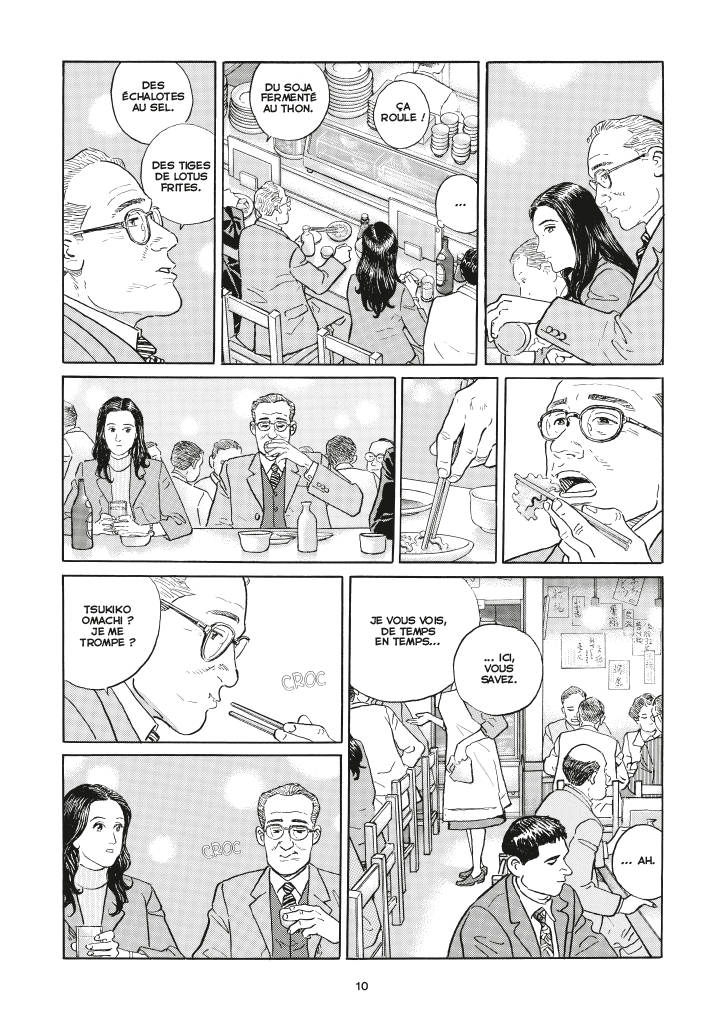 Si le talent de Taniguchi permet de voir des personnages prendre corps et vie avec élégance, des lieux comme des petits restaurants ou une grande forêt surgir de manière très réaliste, il jaillit toutefois le plus lorsqu’il touche aux plats goûtés par les protagonistes, véritables gourmets qui tentent de marier les saveurs avant les sentiments. Le détail concerne également les verres, qui sont plutôt bien remplis - les deux ont une sacrée descente - qui contiennent des sakés, des bières et autres alcools qui attirent l’œil du lecteur. Nourriture et breuvage sont donc mis à l’honneur, au moins sur les deux tiers de ces douces années, pour mettre en valeur l’ensemble de cette histoire d’amour, de compréhension et de partage.