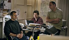 Sans que cela soit a priori un défaut, Schoeller suit trois pistes, dont une avortée : le début s’annonce comme un film personnel, avec le journal du préfet et le meurtre. Disons-le, cette piste ne dure que peu mais elle est remarquablement tenue : exécution froide, paroles de témoins, main posée sur Mme Erignac dans la salle de concert, quelques rapides séquences suffisent. Pierre Schoeller trouve la bonne distance, sans pathos, sans insistance, faisant preuve d’une émotion contenue et d’autant plus poignante. La musique symphonique magnifie ce début, qui semble annoncer une focalisation sur la victime et sa femme. C’est alors que la deuxième piste s’ouvre : nous assistons à une longue série d’interrogatoires : 96 heures de garde à vue sont ici résumées en plans serrés, étouffants. Le montage alterné organise un réseau dense de paroles, celles des Corses impliqués et celles des policiers, que quelques flash-back n’aèrent pas, eux aussi étant en huis-clos. Il faut ici saluer le talent des acteurs qui portent littéralement ces plans sans concessions. Un bémol tout de même : Mathieu Amalric, que par ailleurs nous admirons souvent, peut tenir de nombreux rôles, mais son accent corse est épouvantable. Même les flash-back que nous évoquions sont admirables par l’impression d’étouffement et de tension qu’ils génèrent. Ils permettent de saisir dans leur complexité les débats qui agitent les indépendantistes, entre « soumission » et radicalité. Là encore, le spectateur ne souffle pas, et il en est ravi. D’autant que Pierre Schoeller évite tout effet carte postale, laissant la beauté de la Corse hors-champ jusqu’aux ultimes images, mais elles seront alors la matérialisation d’une nostalgie.