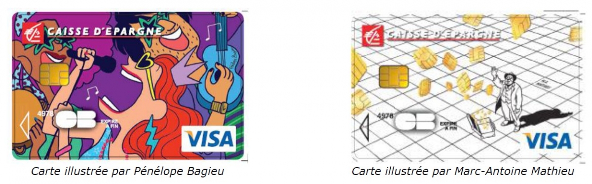 Cette année à l’occasion du festival d’Angoulême 2012, la Caisse d’Epargne, partenaire de l’évènement depuis 28 ans, lance deux nouveaux visuels pour sa carte bleue Visa. La banque a fait appel à deux grandes personnalités du neuvième art, Pénélope Bagieu et Marc-Antoine Mathieu afin de décorer les cartes bancaires. Les deux auteurs se sont prétés au jeu pour un résultat qui devrait ravir les collectionneurs... Comme quoi la Bande Dessinée peut s’immiscer partout !