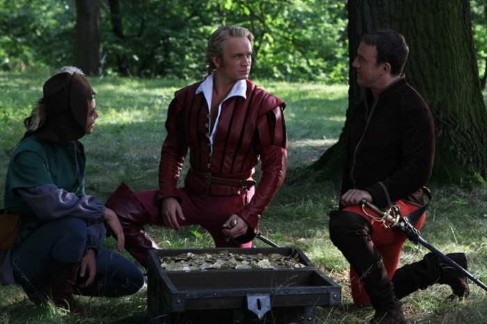 Notre avis : Premier film de Sylvain Fusée (Groland), Les Aventures de Philibert, capitaine puceau porte avant tout la marque de son scénariste Jean-François Halin, un scénario qu’il a coécrit avec Karine Angeli (Brice de Nice). Philibert ou plutôt Eudes, Comte Berendourt de Saint-Avoise, rappelle ainsi beaucoup Hubert Bonisseur de la Bath. Du reste, comme dans la série OSS 117, il y a un évident plaisir à réciter des noms à rallonge aux sonorités saugrenues (avec en point d’orgue, l’énonciation des consentements). Comme l’agent secret, Philibert cache une grande naïveté, qui le rend immédiatement attachant. Moins gaffeur (encore que), le jeune homme n’a également rien du dragueur. Au contraire puisque, comme le titre l’indique, il a juré de garder sa virginité pour celle qu’il aime (ce qui amènera l’une des scènes les plus drôles, celle de la torture). En revanche, l’ambiguïté homosexuelle reste fortement présente (sans aucune vulgarité), de même que l’absence du père ou encore l’esprit de camaraderie (de plus en plus présent au fil des scénarios). Il y a une telle cohérence entre les deux personnages qu’on met un petit moment à accepter de voir Jérémie Renier incarner Philibert tant le rôle semblait dévolu à Jean Dujardin (exagération des mouvements, sourcil en circonflexe, rire à gorge déployée les mains sur la hanche...). Mais l’acteur montre une telle aisance dans le jeu, et plus particulièrement dans la comédie, qu’on l’oublie très vite.