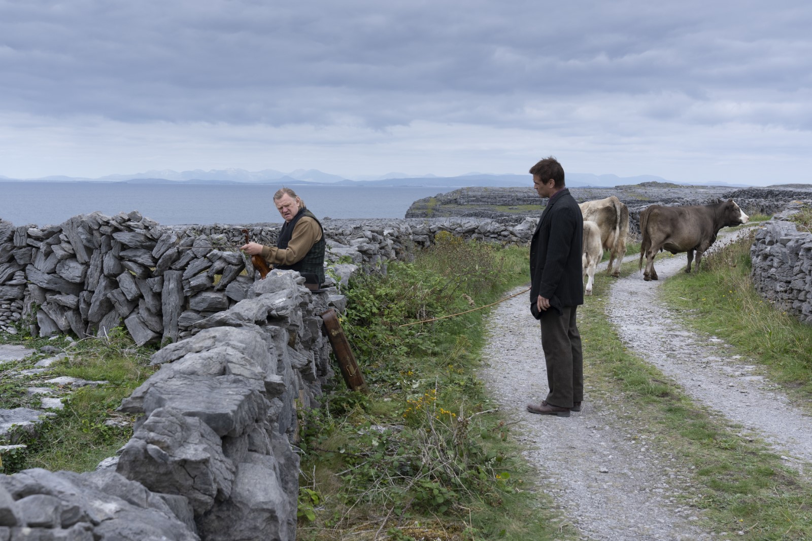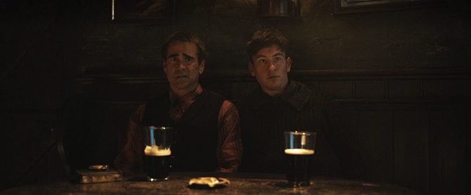 Pádraic Súilleabháin (Farrell) vit avec sa sœur Shiobhán (Kerry Condon) dans une maison à isolée, en compagnie d’animaux domestiques qu’il vénère. Il noue depuis des années une amitié avec Colm (Brendan Gleason), avec lequel il fréquente chaque soir le pub de l’île. Mais du jour au lendemain, et sans raison apparente, Colm décide de mettre un terme à leur amitié… La suite de la narration mêle suspense psychologique et retournements de situation avec une habileté certaine, qui permet de capter l’attention pendant tout le récit. Au fur et à mesure que l’histoire prend une dimension dramatique, les intentions du scénariste réalisateur apparaissent clairement : narrer une fable sur l’absurdité de la condition humaine, la banalité et la médiocrité du quotidien aboutissant à un mal-être qui peut mener au pire. Il y a du Ionesco et du Beckett dans les propos et l’écriture de McDonagh, et les dialogues ciselés avec verve sont au service de la tournure désabusée du récit.