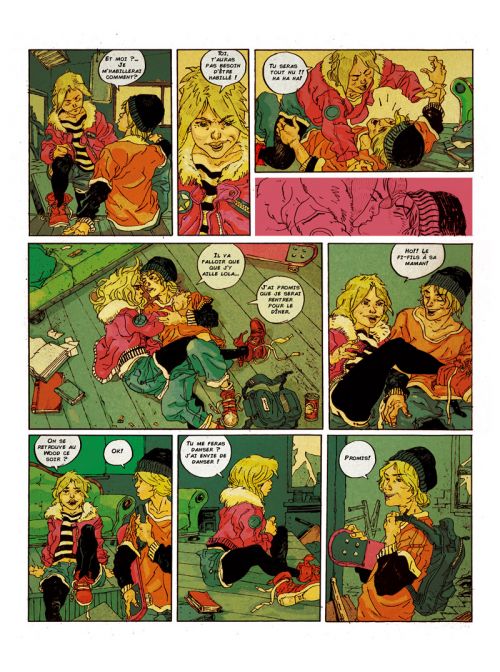 De même que le sujet voulait apporter petit à petit du sang et des coups, le dessin s’imprègne progressivement de traits vifs et de couleurs farouches. Le malaise s’impose alors, révélant une face qui n’était pas vraiment cachée, seulement minimisée dans les premières pages. Les visages presque mignons du début ont ainsi acquis des rictus d’adultes, et les corps semblent distendus, étirés comme si une force mauvaise les avait transformé, alors que le style n’a pas changé. Une impression qui fait toute l’originalité de cet auteur.