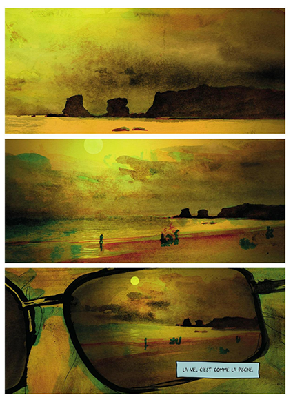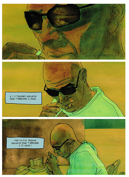 Une histoire qui nous offre le plaisir de prendre son temps, d’installer un écoulement des situations en nous permettant de voir les grains de sable du sablier tomber un à un, tout en nous immergeant assez pour nous empêcher de voir le schéma global. Et c’est tant mieux ! Les grandes cases laissent l’espace nécessaire au dessin pour respirer mais aussi aux interrogations des personnages pour flotter.