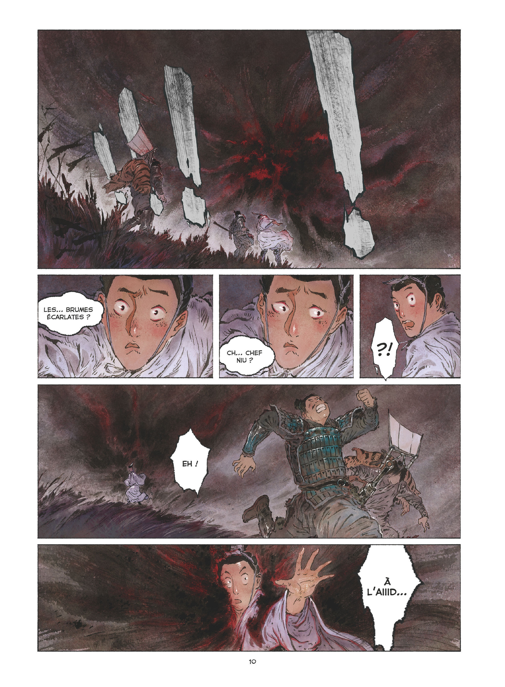 Inspiré du folklore chinois, le premier tome de la saga de Wu Qingsong séduit par son originalité aux yeux d’un occidental et par la richesse de son univers foisonnant, très bien rendu par la carte de ce monde imaginaire énormément riche sur les pages gardes de l’album. L’auteur met en scène une intrigue politique complexe dans un monde médiéval résolument hostile, puisque les brumes menacent à chaque instant soldats et paysans des trois camps. Il introduit dans ce sombre univers des guerriers « rebelles » charismatiques, qui interviennent au moment où le projet de mariage arrangé entre deux des trois royaumes tourne au vinaigre. Le dessinateur se distingue par le rendu attractif de ses personnages et par une maîtrise incontestable de la couleur, bien mise en valeur par l’édition impeccable de Glénat. Wu Qingsong sait également manier la tension dramatique, que ce soit pour narrer un combat ou rendre compte du destin de paysans.