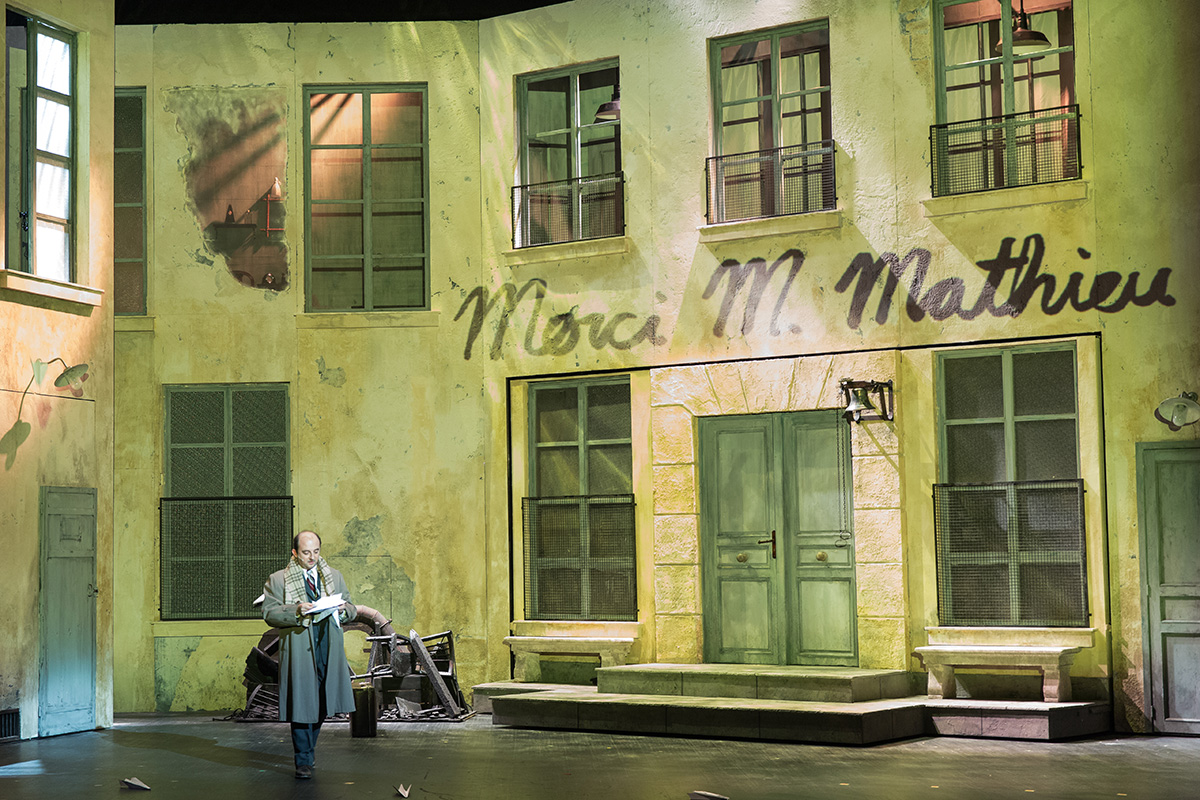 Jean-Louis Barcelona est « le pion de l’école », M. Mathieu, « crâne d’œuf, crâne d’obus » comme le surnomment les enfants. Comédien altruiste il sait capter l’attention des enfants et dirige la maîtrise tout au long de la pièce … pour de vrai. On sent toute la complicité de ce chœur avec lui, son geste est sincère et les regards échangés francs.