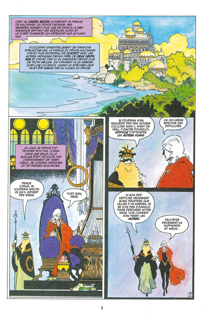 Les œuvres du Multivers de Michael Moorcock font partie des classiques de la fantasy, dans la continuité d’un Tolkien, influençant notamment grandement les jeux de plateau comme Warhammer, et annonçant par exemple le Cycle de Majipoor de Silverberg ou Dark Moon de Gemmel. Dans les années 80-90, le duo Mike Baron et Mignola s’attaque à retranscrire en comic ce fameux multivers, où les chevaliers ont de l’honneur elfique, les hommes une barbarie assumée et les dieux rient de leurs exploits tout en étant blasés. Épiques à souhait, Les chroniques de Corum possèdent l’avantage d’avoir un charme désuet adossé à une complexité intéressante, au niveau des forces et faiblesses de ses personnages en particulier. En effet, le héros, très à cheval sur l’honneur, a cependant des parts d’ombre, à mesure que le destin se joue de lui, et vogue de plus en plus sur des eaux troubles et des sentiments obscurs. Ses actes, où la vengeance joue un rôle central, paraissent dès ce premier tome de plus en plus chaotiques, comme si les mondes dans lequel il évolue parvenaient finalement à le pervertir lentement.