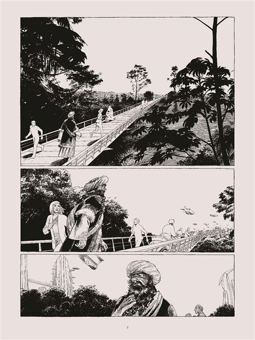 Critique : Les Cités obscures sont un monument de la bande dessinée. On pourrait ne rien ajouter à cette phrase, mais à l’occasion de la réédition de La théorie du grain de sable (tome 1 officieux, sans lien avec les autres histoires de cet univers), pourquoi ne pas argumenter un peu cet aphorisme ? Concrètement, l’univers créé par François Schuiten et Benoît Peeters est un de ces mondes fantastiques où le réalisme s’exprime d’une manière rigoriste, exemplaire pour en faire ressortir des failles crispantes, déroutantes ou absurdes. Cet album est d’ailleurs un des ouvrages iconiques : tel Maupassant, Gogol ou Buzzati, un petit élément va faire dérailler une situation qui semblait anodine, et à l’aide des mathématiques ou d’autres rouages d’apparence scientifiques, cette situation ne fait qu’empirer, lentement mais sûrement. Parabole d’une société figée face à ce qu’elle ne comprend pas et incapable de s’adapter, cette histoire mêle l’enquête avec l’utopie, polar et dystopie. Le prologue avait ouvert la voie à un échappatoire oriental, lointain et exotique, qui servira d’épilogue pour façonner non pas une ville mais tout un monde tiré d’une imagination illimitée, pour le plus grand bonheur du lecteur.